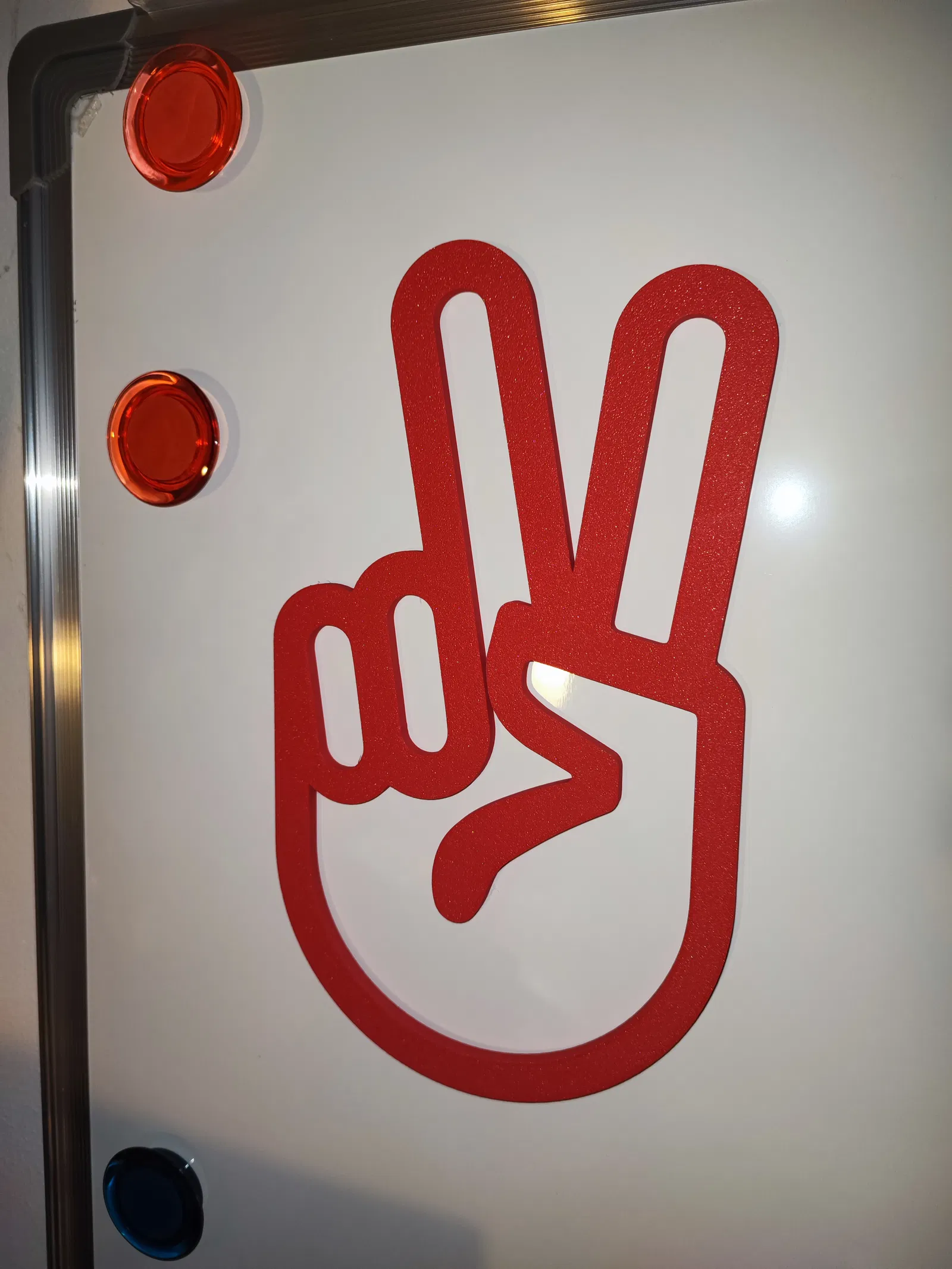 Mình vẽ một bàn tay "Peace". Mặt sau có chỗ gắn 3 cục nam châm (đường kính 6mm, cao 3mm) nha.