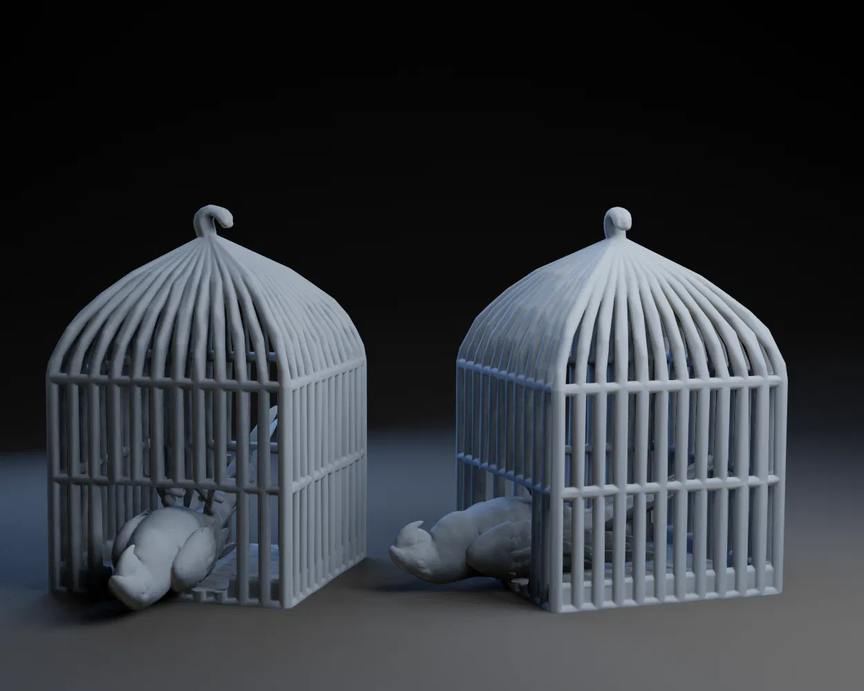 Mô hình Chú Vẹt Chết và Lồng chim, lấy cảm hứng từ Monty Python. Phiên bản này có một chút sáng tạo thêm ở phần lồng chim, mang đậm phong cách hài hước đặc trưng.