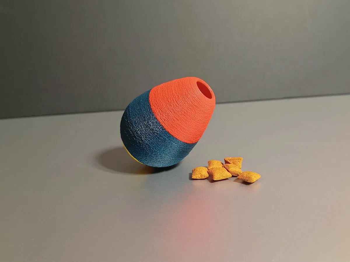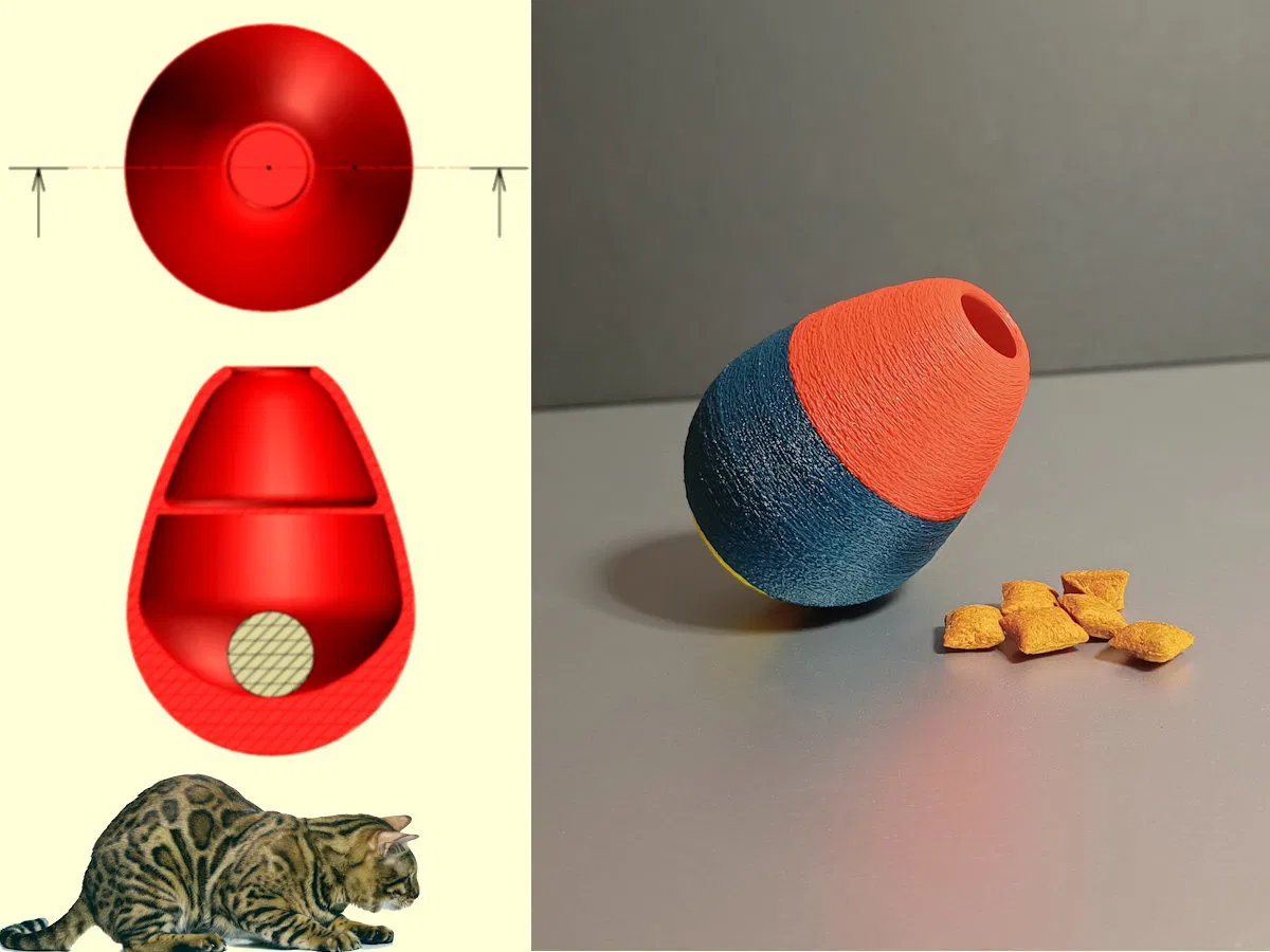 Trứng lắc bánh là đồ chơi cho mèo cực vui, dễ in với 2 tùy chọn: có bi hoặc không bi. Bạn có thể thêm ốc M8 hoặc bi ve để tăng trọng lượng và giúp trứng đứng thẳng hơn. Chỉ cần bỏ bánh vào và để mèo cưng tự khám phá nhé!