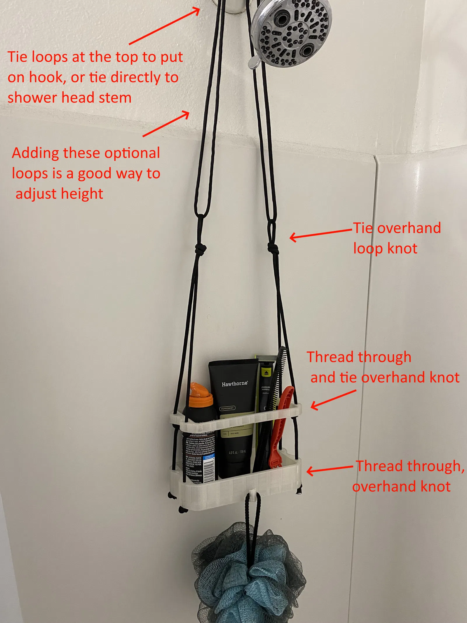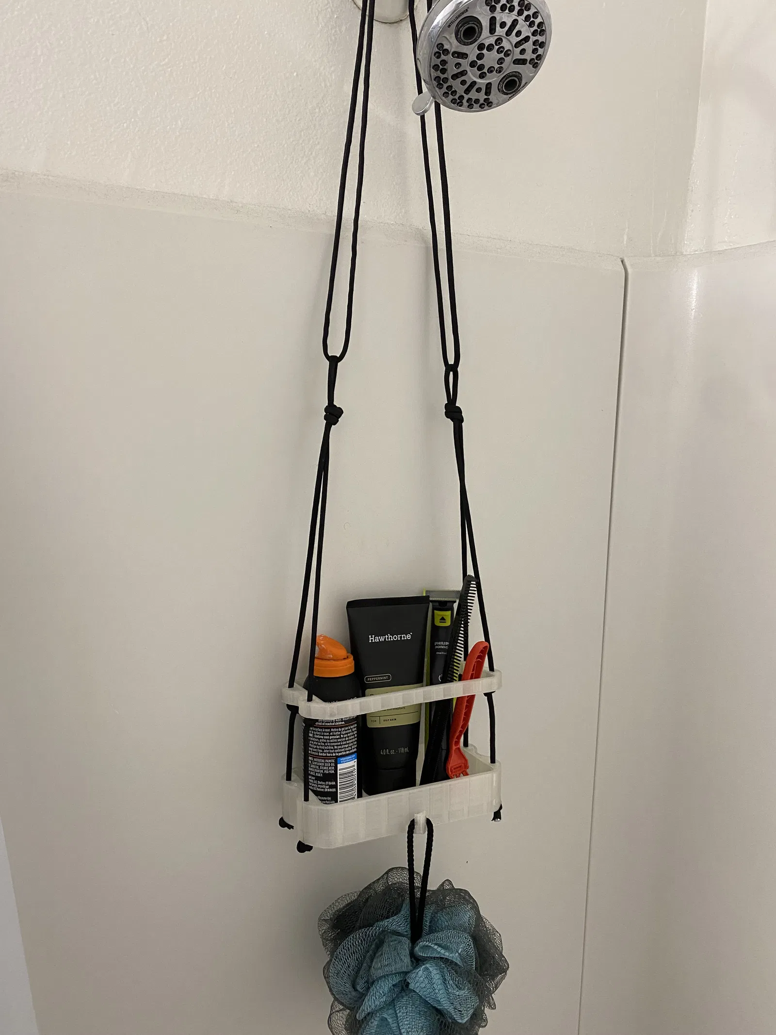 Kệ phòng tắm treo dây này rất tuyệt để giữ những món đồ nhỏ không bị rơi ra khỏi thành vòi sen và khỏi nước. Chỉ với hai đoạn dây thừng là có thể lắp ráp giỏ đựng đồ này khá dễ dàng trong khoảng 5-10 phút.