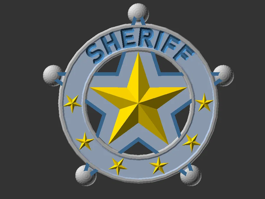 Một bản in 3D cho huy hiệu cảnh sát trưởng hình ngôi sao, với các tùy chọn biến thể khác nhau. Mã nguồn OpenSCAD có sẵn để tùy chỉnh. Thích hợp cho trang phục hoặc trưng bày.