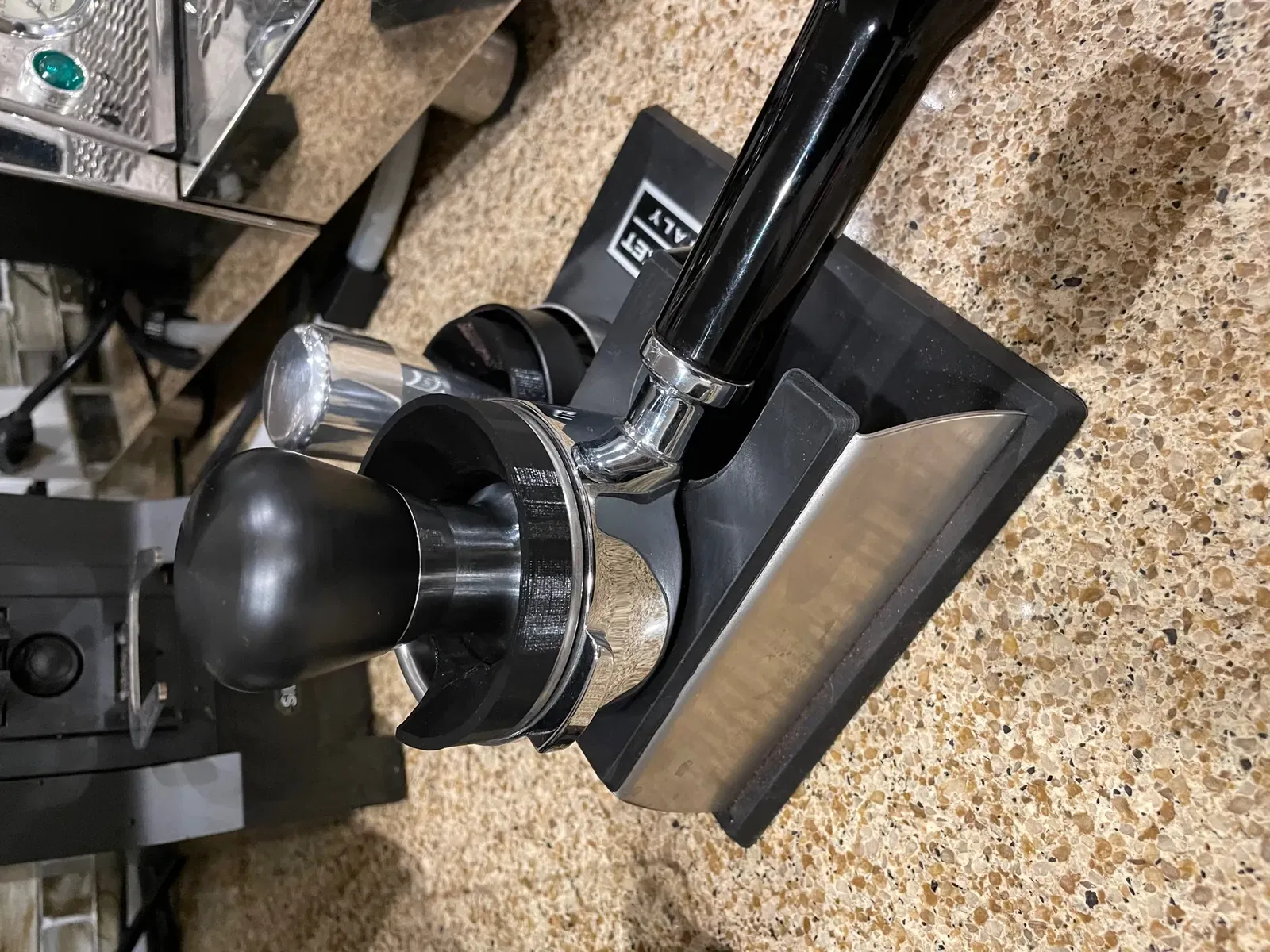 Điều này tiết kiệm thời gian chuẩn bị bộ lọc 7 gram trên một tay cầm 58mm. Cà phê được dẫn vào giữa bộ lọc và một hướng dẫn căn chỉnh cái nén 41mm của bạn thẳng vào cà phê.