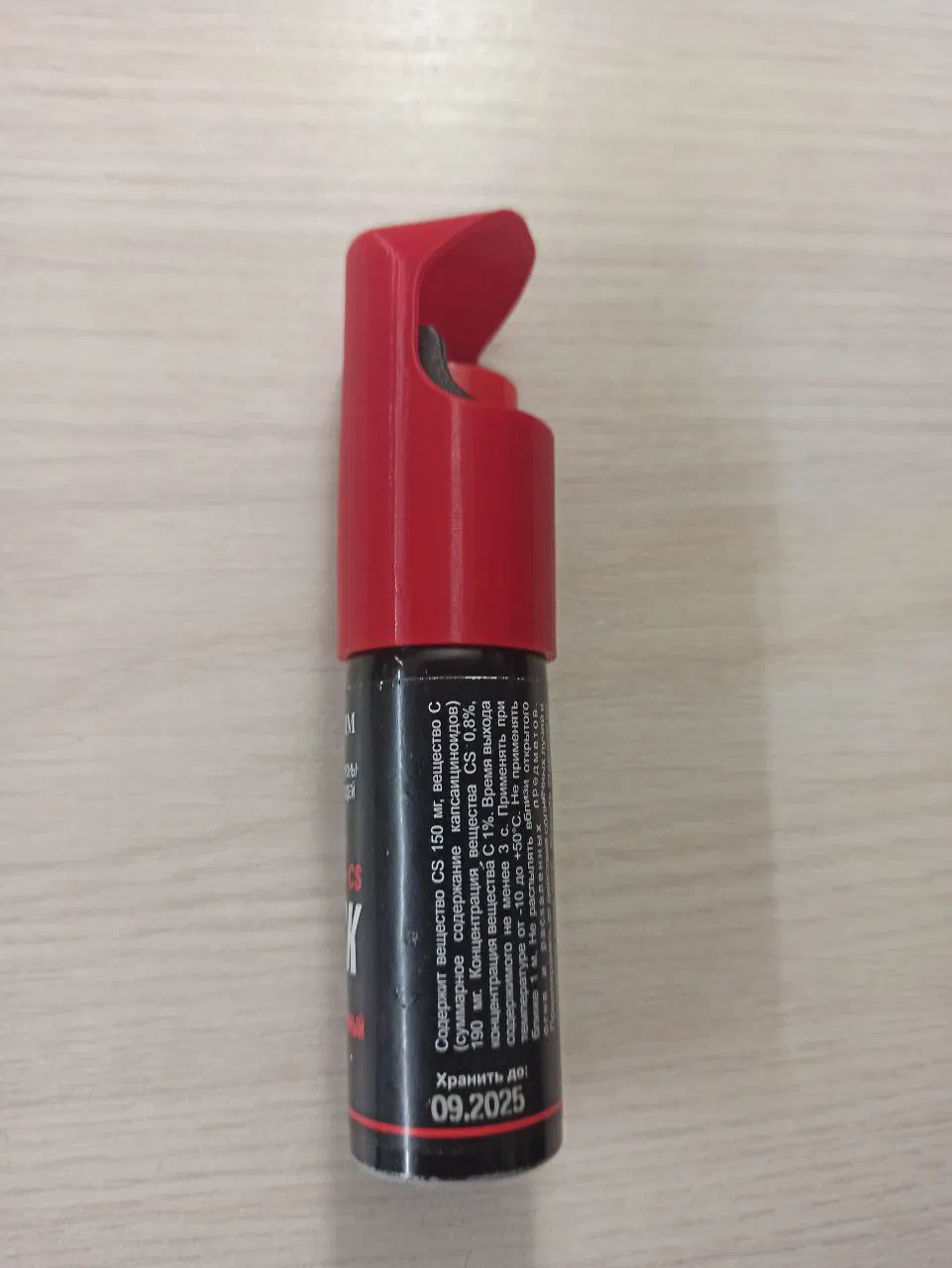Nắp bảo vệ được thiết kế cho bình xịt hơi cay 25ml của Techcrim, với các phiên bản "Black", "жгучий перчик", "lady". Sản phẩm được in bằng công nghệ 3D và yêu cầu sử dụng đế chống khi in.
