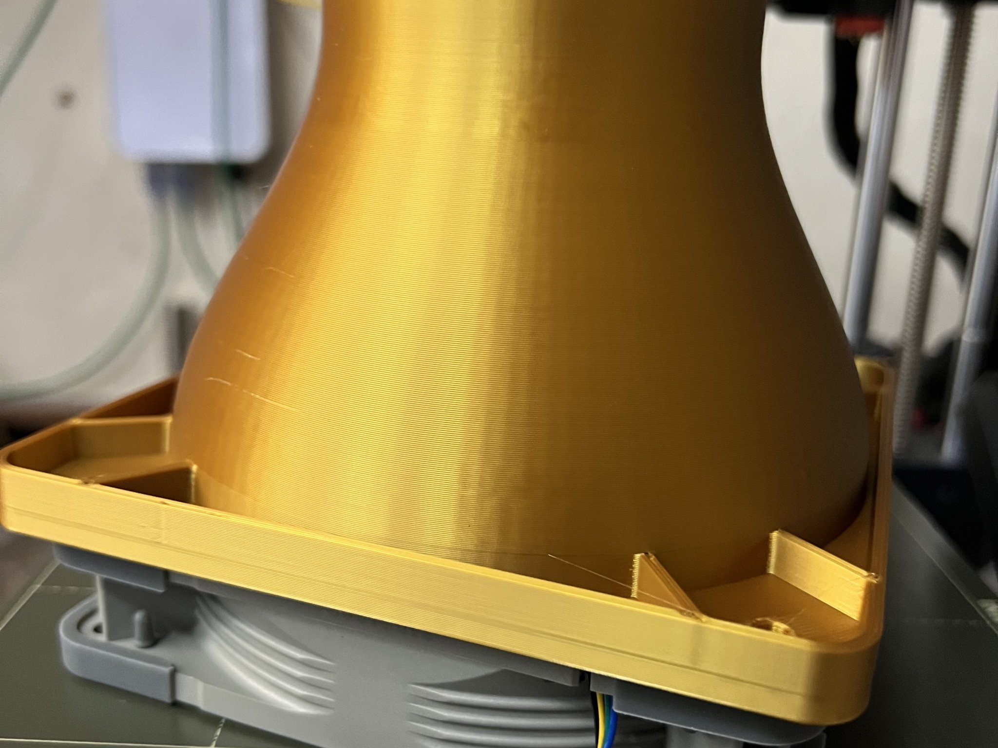 Có thể in mà không cần hỗ trợ. Độ dốc của phần "ren" ống là 45 độ.