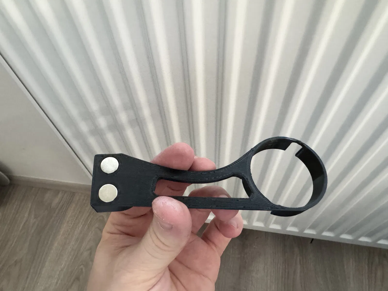 2-6 cục nam châm tùy theo sở thích của bạn, ở hai bên để cố định. 3x10 mm. Để cố định tốt hơn, tôi khuyên bạn nên thêm một lớp keo thứ hai trước khi gắn nam châm.