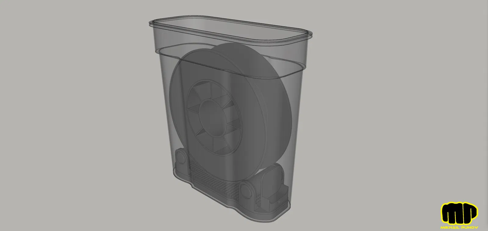 Hộp để lưu trữ một cuộn với một triết gia. Có thể được sử dụng và làm nguồn cung cấp nhựa cho máy in cho một đường thẳng.