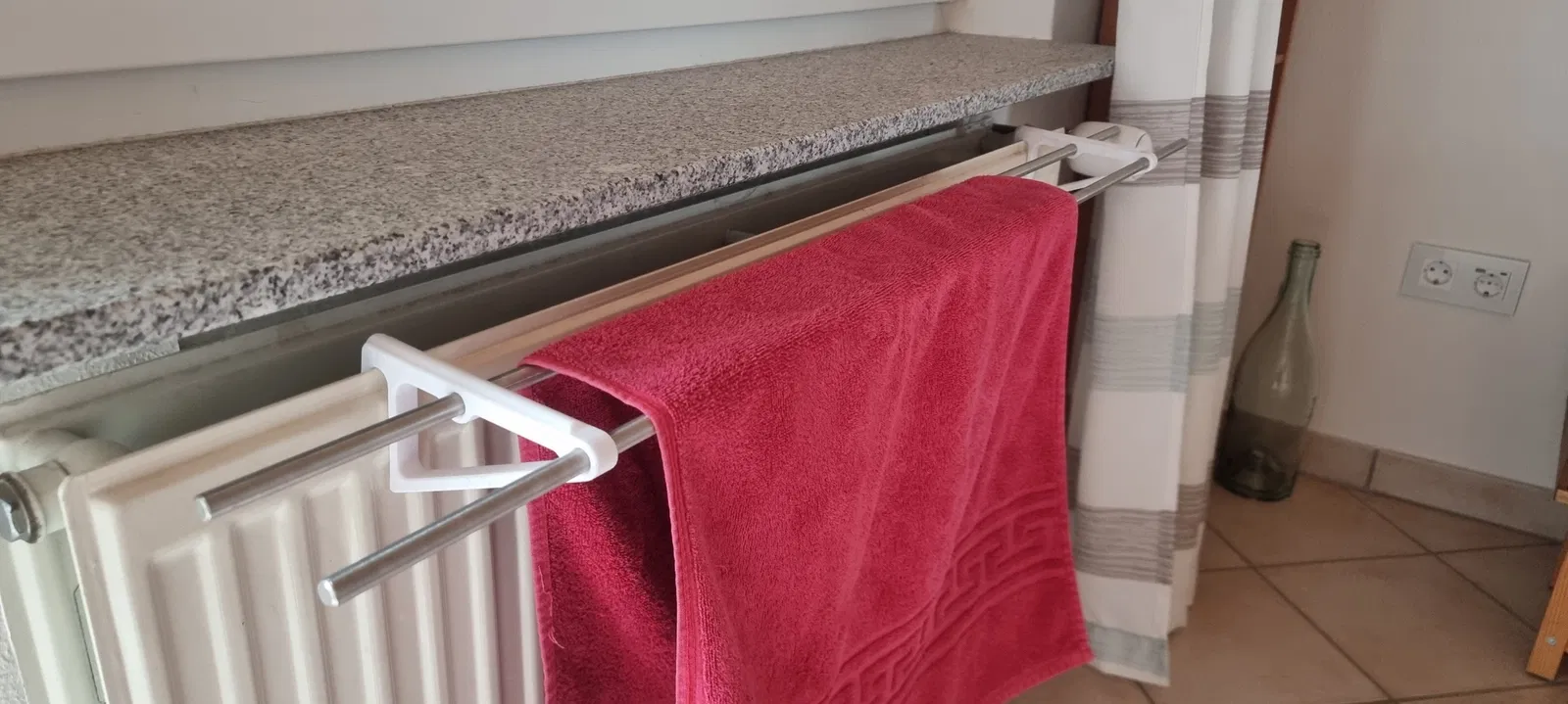 Giá treo khăn cho máy sưởi, kết hợp với thanh 12mm. Được in bằng X1 Carbon với chất liệu PETG cho độ đàn hồi tốt hơn. Thích hợp cho nhu cầu giữ khăn của bạn.