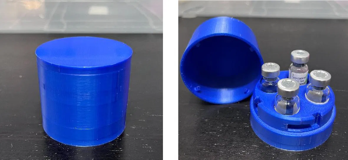 Hộp đựng lọ peptide và thuốc này có 3 lỗ ø.66" và 1 lỗ ø.70" với nắp liền. Rất lý tưởng để bảo quản trong tủ lạnh, đặc biệt cho các loại thuốc như BPC-157. Nên in độ phân giải cao để đảm bảo các bộ phận khớp nhau.