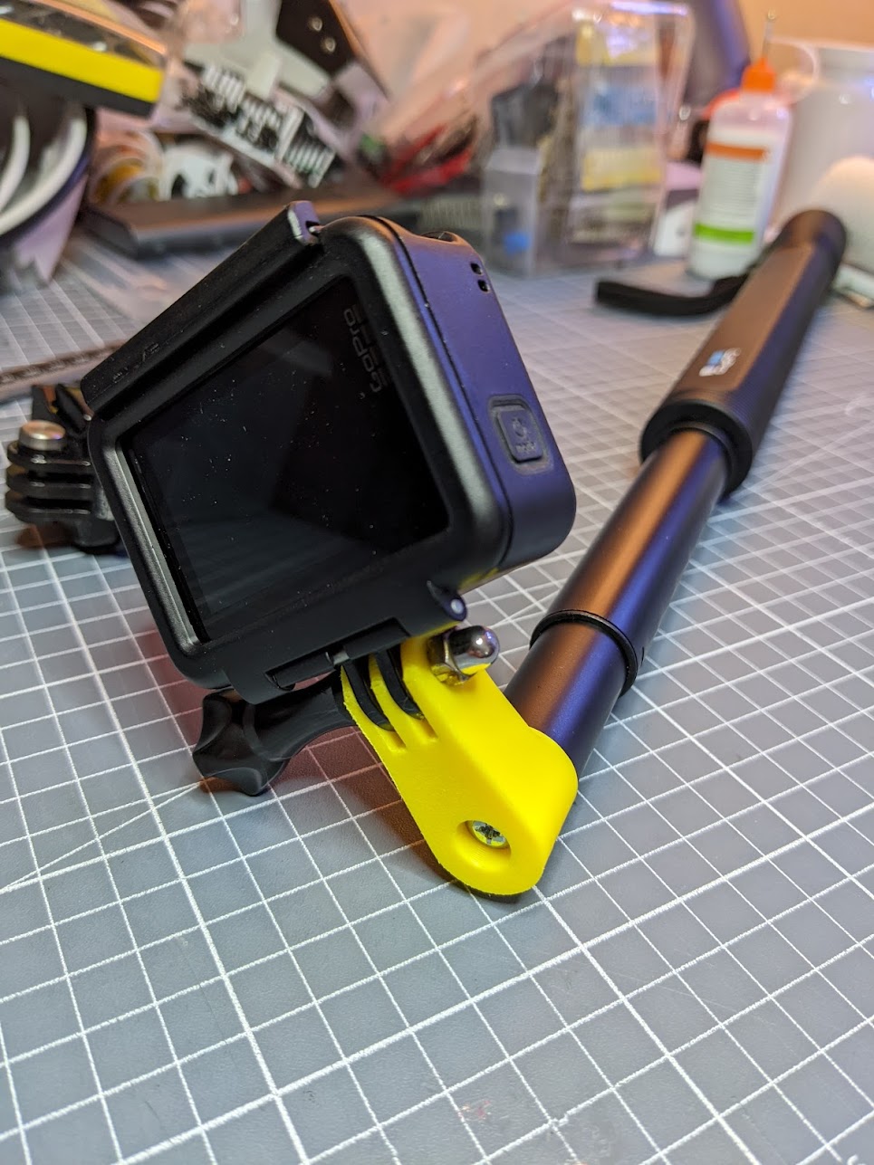 Đầu thay thế cho cây gậy Gopro El Grande. Khớp nối bi zin yếu và dễ gãy, phần này giúp thay thế đơn giản, nhẹ hơn và chắc chắn hơn. Có hai phần để in và ốc M3x50mm để siết.