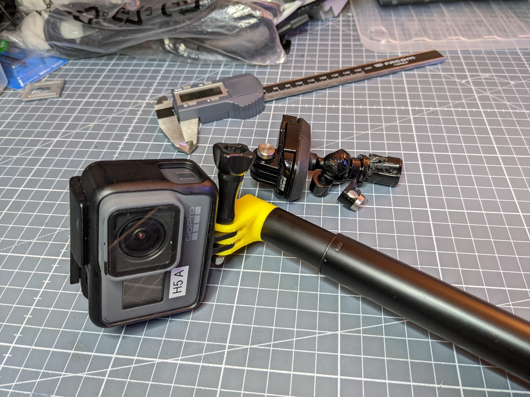 Cái khớp nối bi trên cây gậy El Grande Gopro yếu xì, làm bằng nhựa giòn dễ gãy lắm. Không có phụ tùng thay thế chính hãng mà cái đầu nó còn khó tháo ra vì nó đúc liền với ống. Gopro support chỉ bạn mua cây mới luôn… (thật đó!)