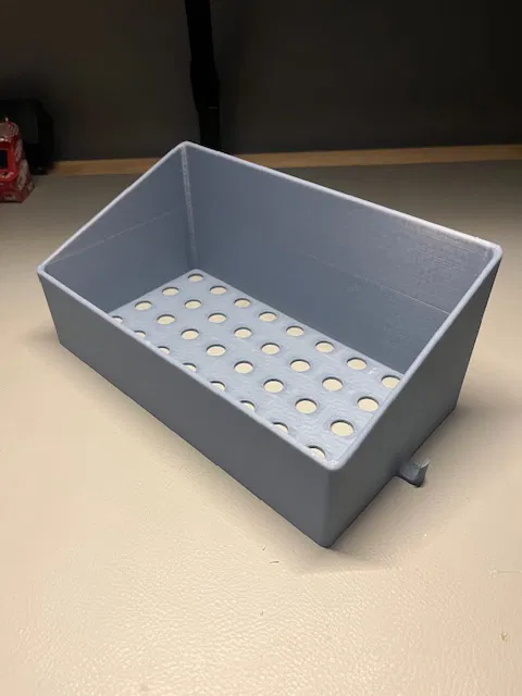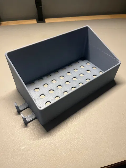 Chỉ là một cái kệ để đồ nhà tắm đơn giản em thiết kế bằng Onshape, có chỗ để dao cạo ở bên trái và móc treo ở bên phải. Băng dính hai mặt là ổn áp cho hầu hết các phòng tắm nha!