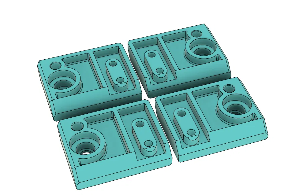 Được làm lại hoàn toàn, chỉ thêm một vài chi tiết nhỏ so với bản gốc để dễ in hơn với ASA, ABS… và có cả vòng bi (bearing) nữa. Đã thêm khoảng hở cho lỗ trục để tránh làm xệ đế giữ motor khi siết chặt.