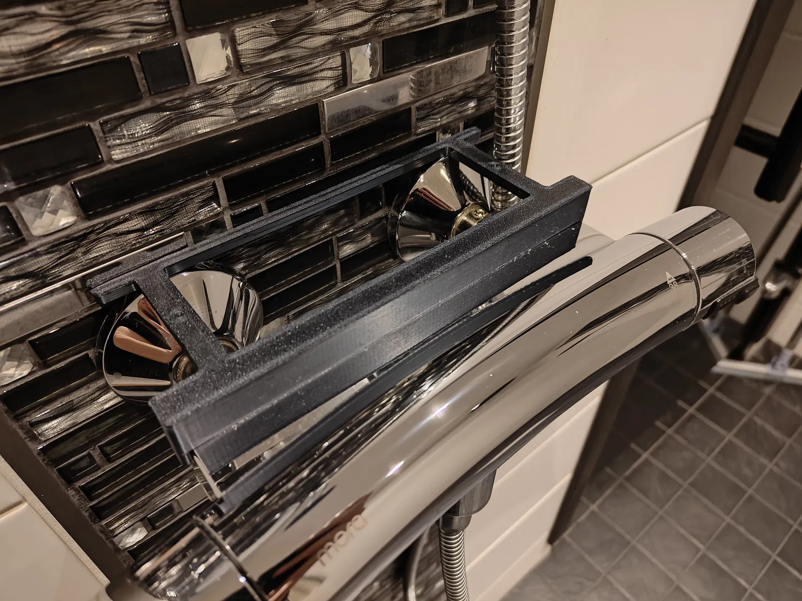 Tui tự làm cái này xài nên có thể nó không fit với nhiều phòng tắm khác, nhưng tui có để file FreeCAD lại luôn, ai muốn chế tạo đế khác thì cứ việc.