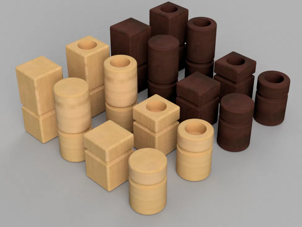 Bộ quân cờ và bàn chơi cho trò chơi board game Quarto. In hai bộ với hai màu khác nhau cho tổng cộng 16 quân cờ nhé.