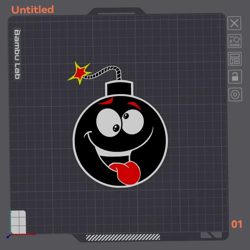 2D Hình ảnh của một quả bom điên cuồng. In mặt xuống trên một đĩa có kết cấu để có kết quả tốt nhất và sơn nó ở cả hai mặt.
