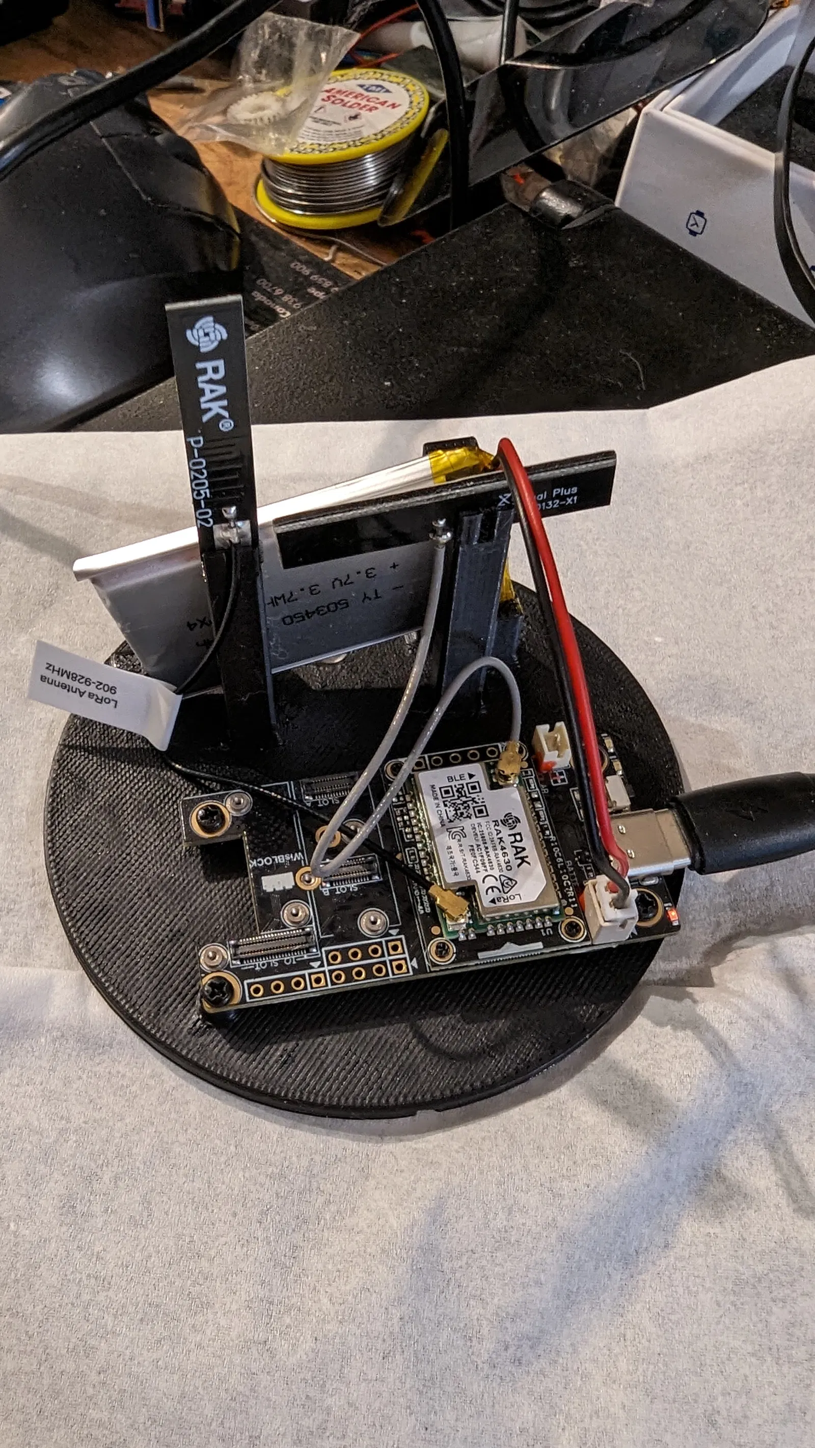 Tui thích cái thiết kế radome của TechnoVardo, nhưng mà ảnh (cũng hợp lý) không có đế cho mọi loại radio. Tui có một đế trống và một đế cho WisBlock 17007 (WisBlock Base Board), bao gồm cả chỗ gắn antenna cho BLE và LoRa.