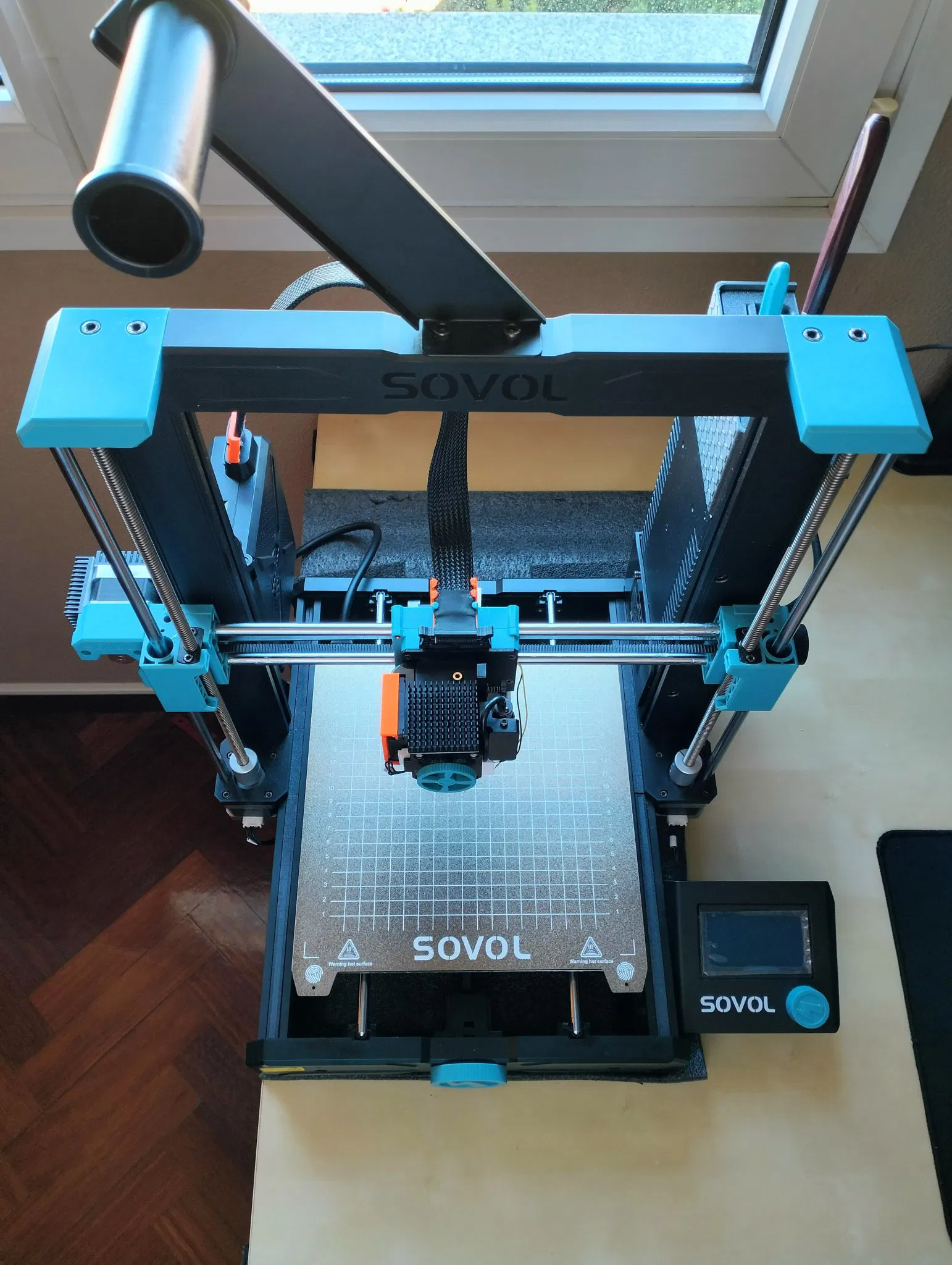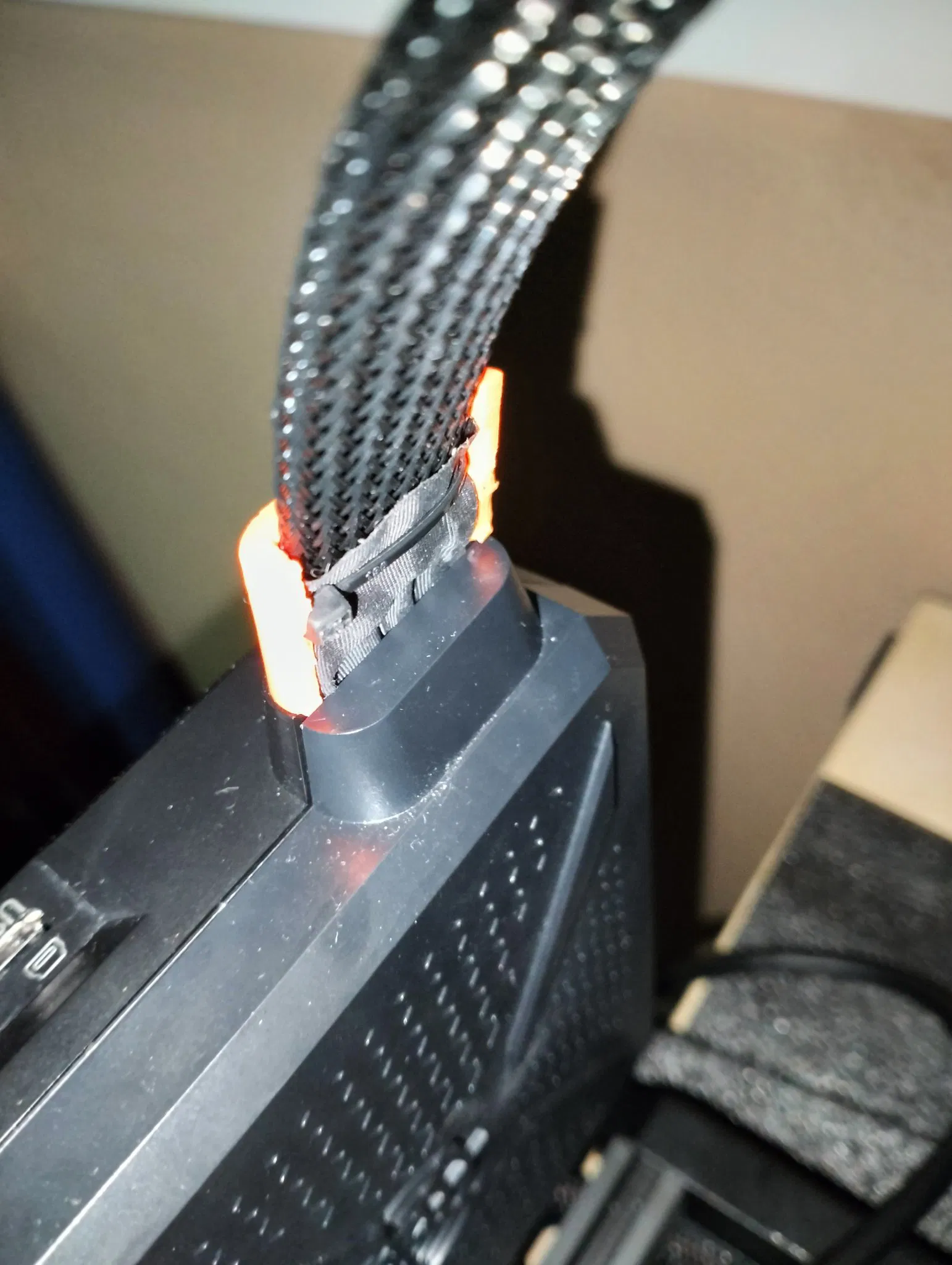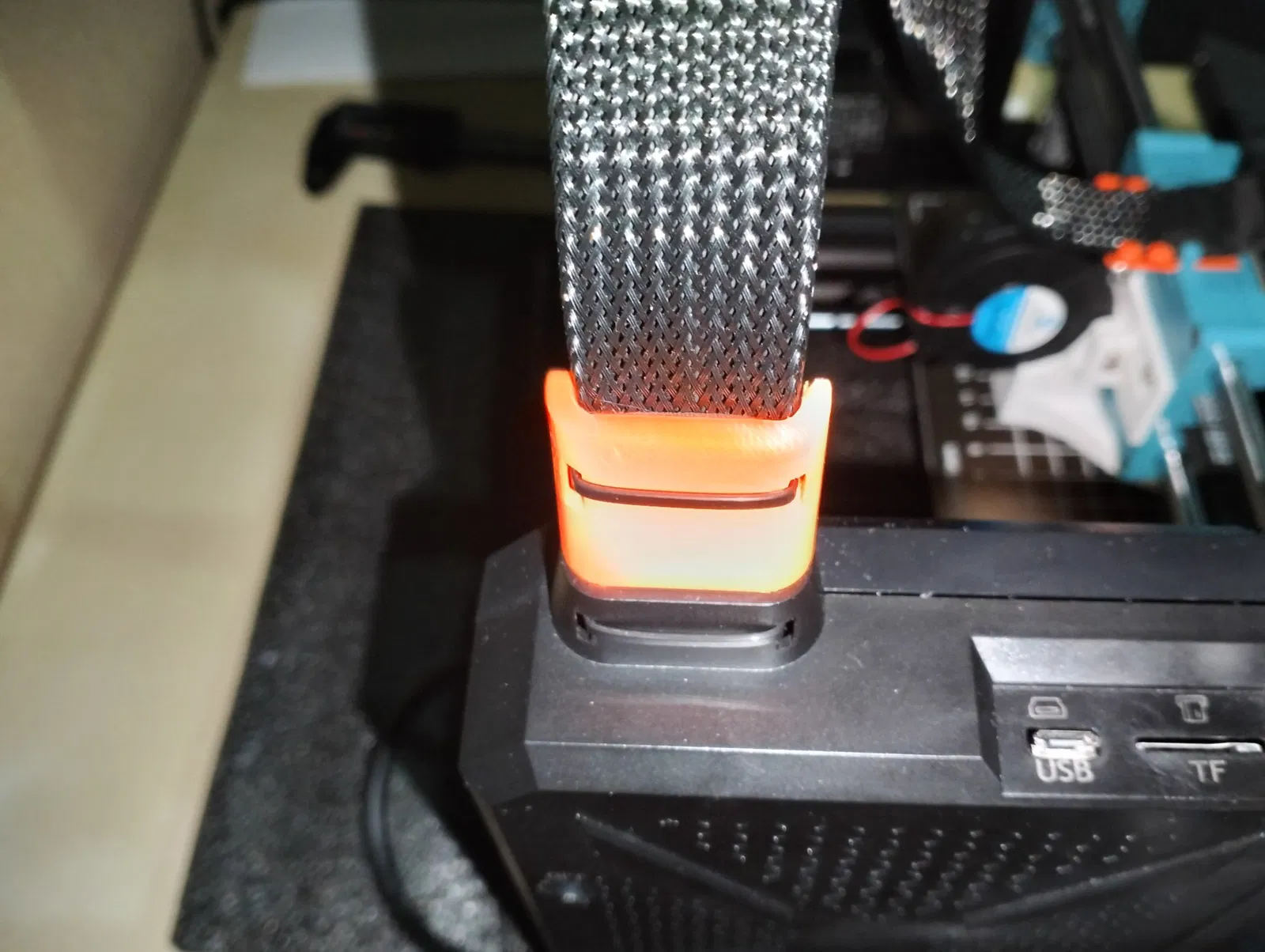 Mảnh đầu tiên gắn vào đầu dây cáp kết nối với bo mạch chính, giữ lại không gian ziptie ban đầu trong khi thêm một cái nữa ở một góc. Mảnh thứ hai lắp vào đầu in. Cài đặt - chỉ cần nghiêng 45 độ, trượt vào một bên, rồi bên kia, đảm bảo đủ khoảng trống để đẩy xuống.