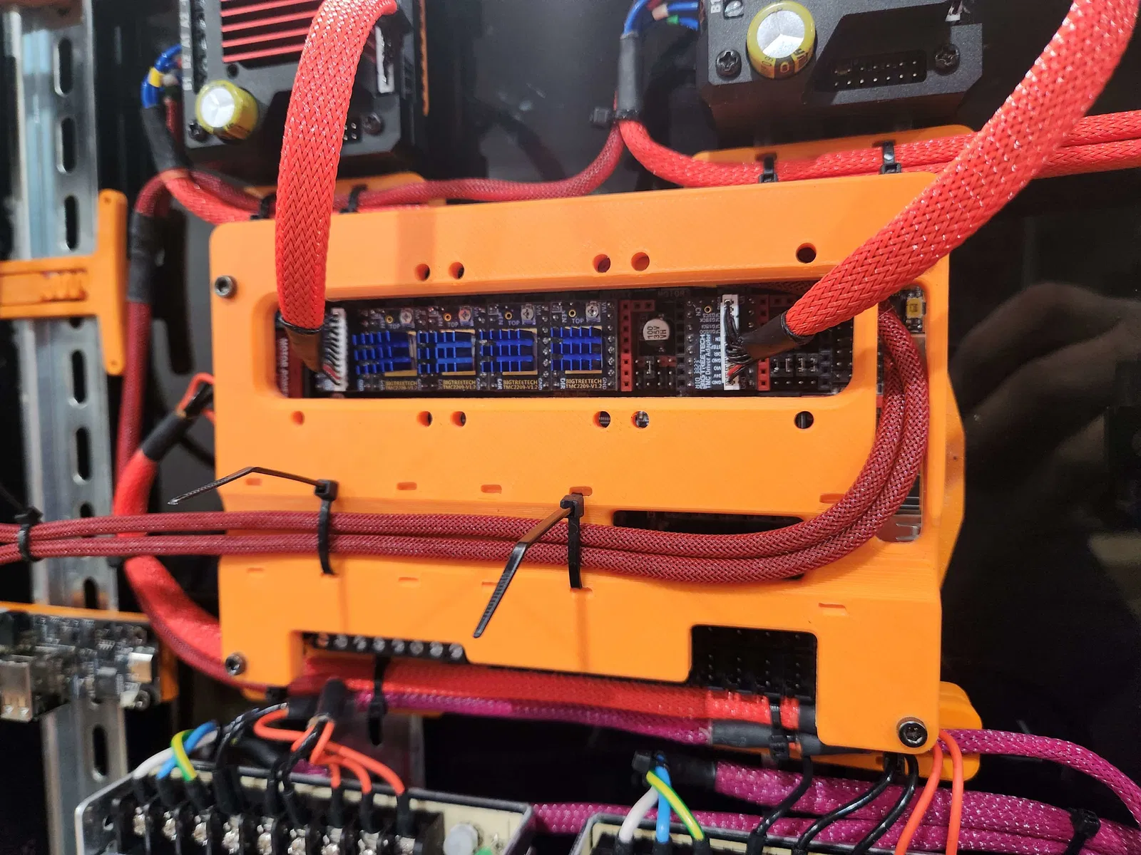 Muốn có một cách gọn gàng để sắp xếp và quản lý dây cáp cho tất cả các dây điện từ BTT Octopus trong phiên bản 2.4 mới nhất của tôi. Giải pháp cho phép định tuyến dây điện lên và qua bo mạch, tích hợp 3 quạt 4010 để làm mát stepper, mang lại sự ngăn nắp và hiệu quả.