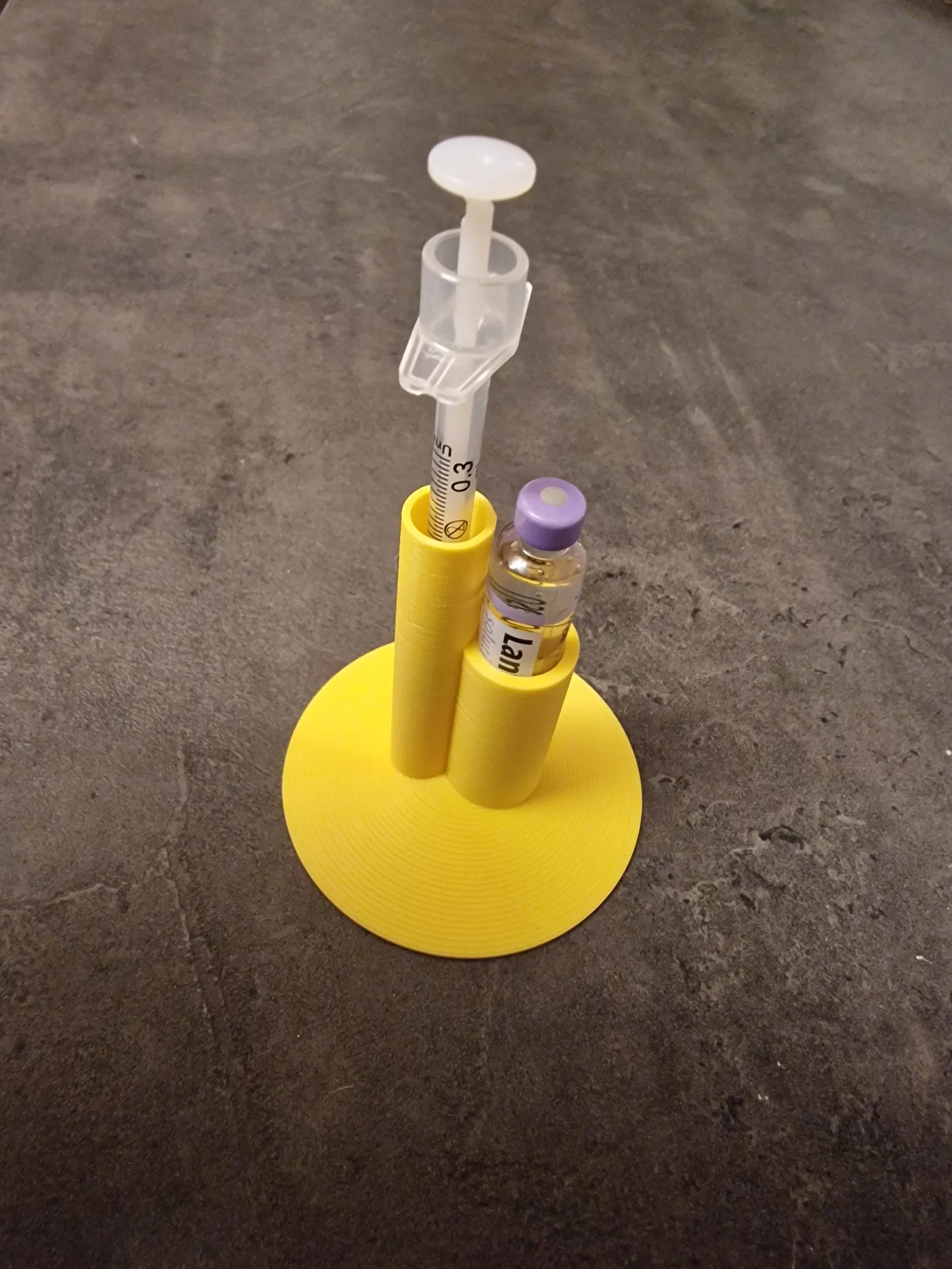 Giá đỡ lọ insulin cho thú cưng, dùng cho lọ 3ml. Giúp cất giữ lọ insulin và ống tiêm gọn gàng trong tủ lạnh, dễ dàng lấy ra khi cần tiêm cho thú cưng. Sản phẩm được in từ nhựa PLA, bền và an toàn.