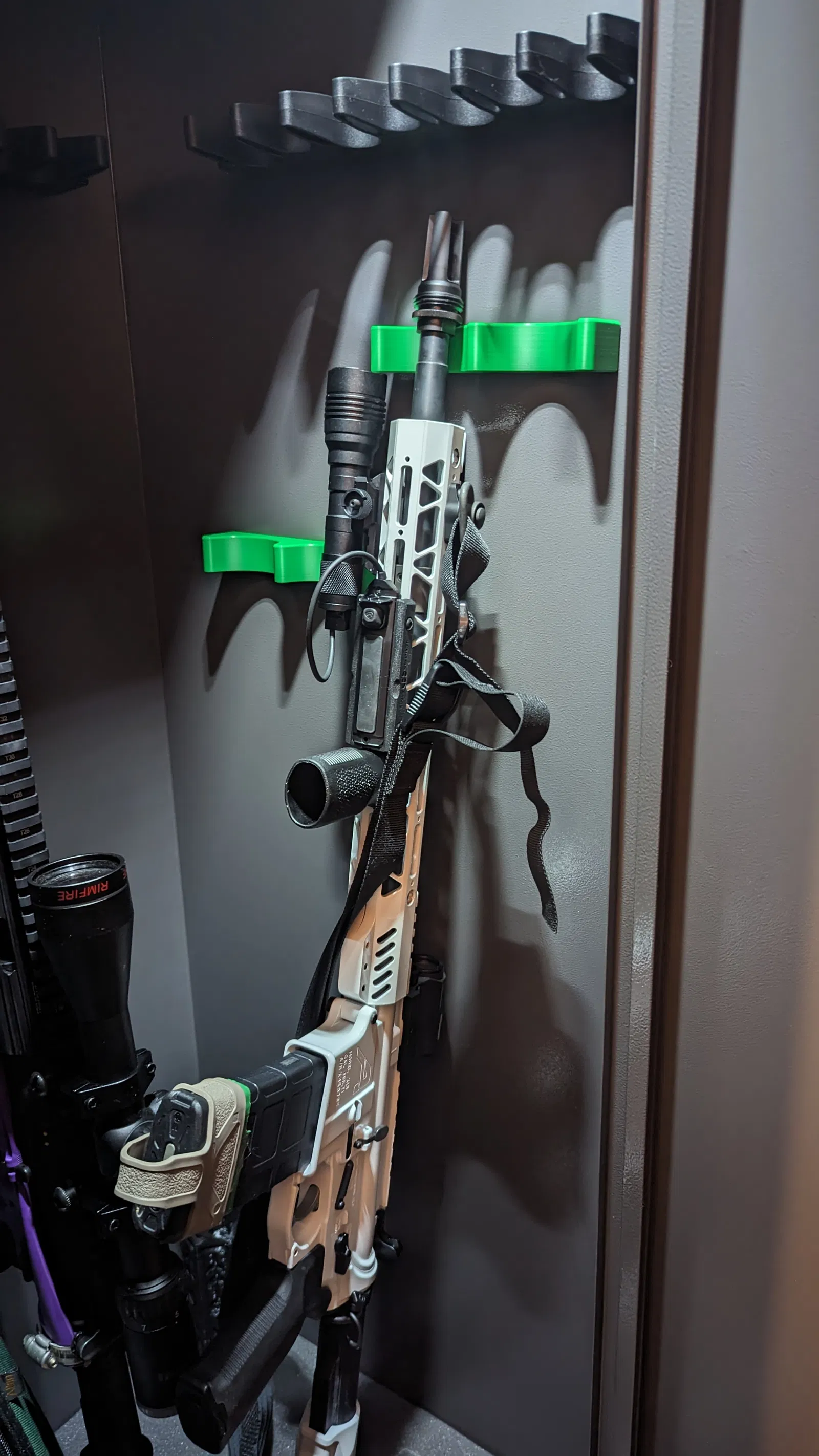 Gun Safe Rifle Rest mà tôi đã thiết kế để tôi có thể có nhiều tùy chọn hơn trong tổ chức. Chúng được tạo ra cho súng có phạm vi hoặc chấm đỏ.