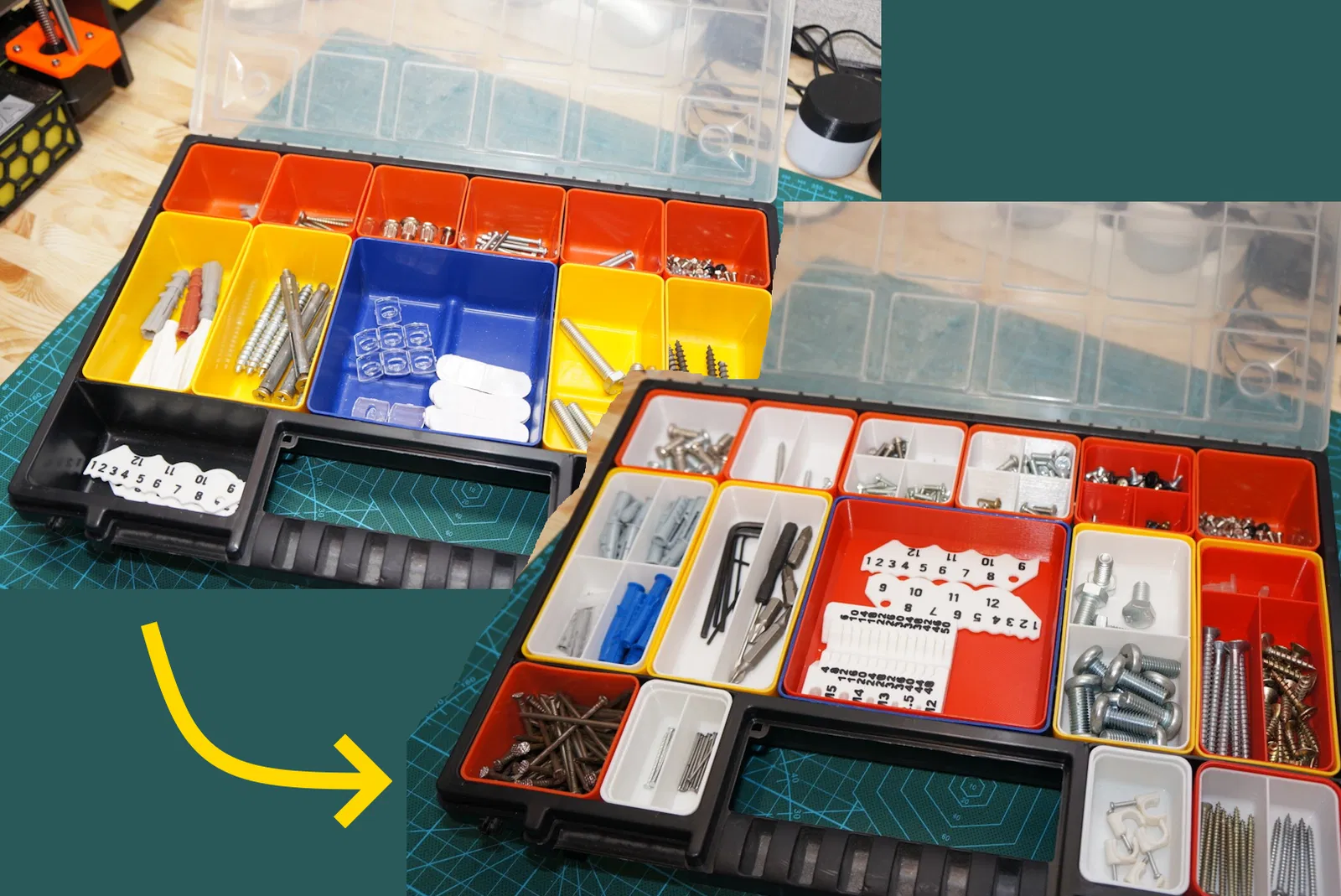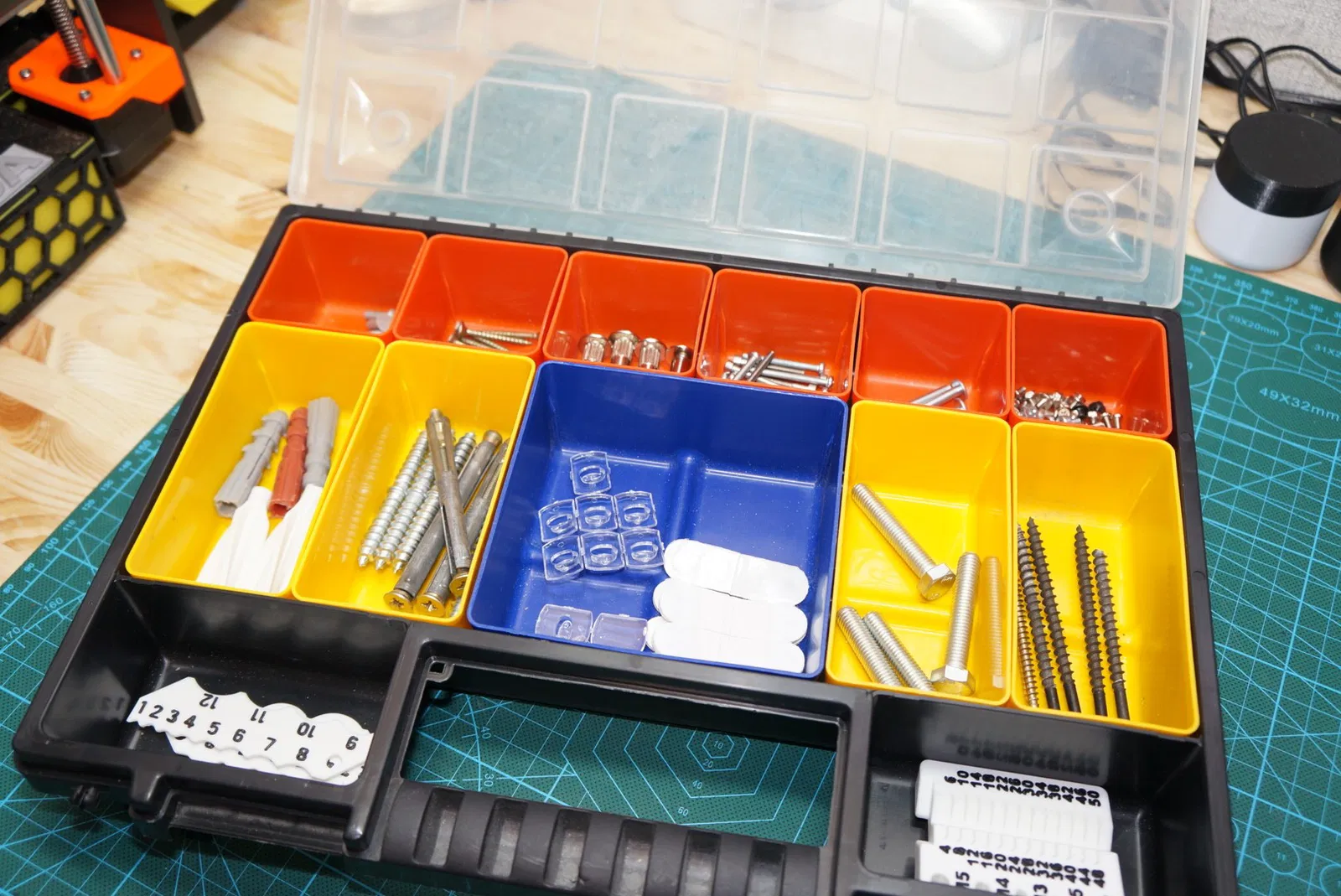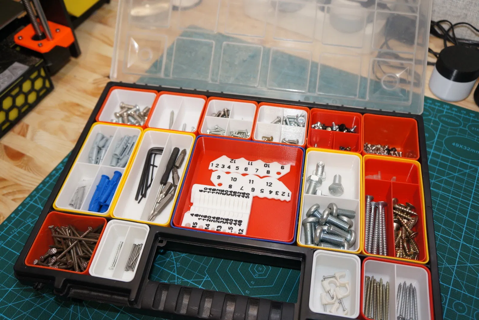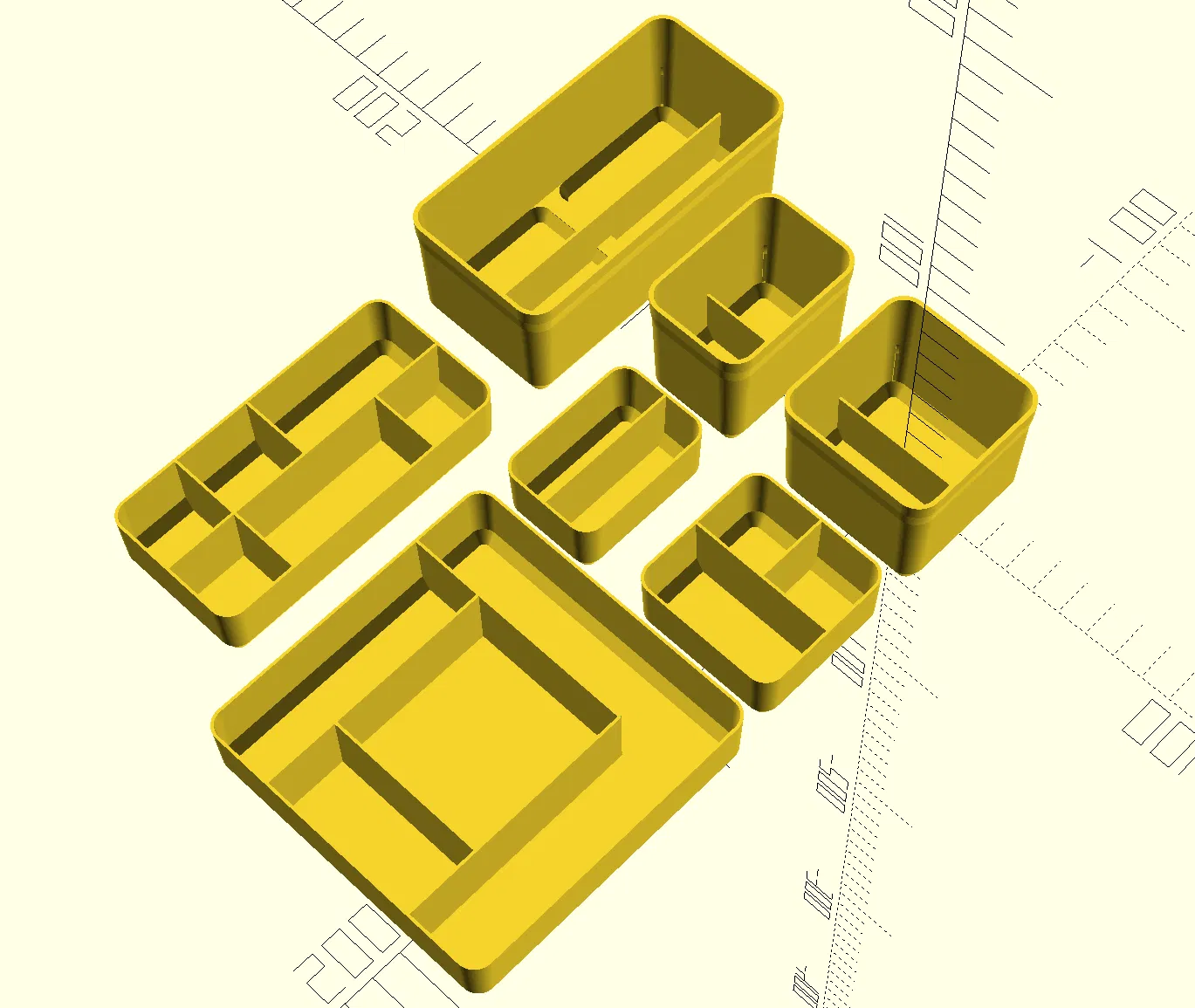 Cập nhật hộp tổ chức 'noname' với các ngăn và bộ phận chèn có thể tùy chỉnh. Giờ đây bạn có thể in các ngăn và bộ phận chèn với mọi kích cỡ theo nhu cầu của mình bằng OpenScad.