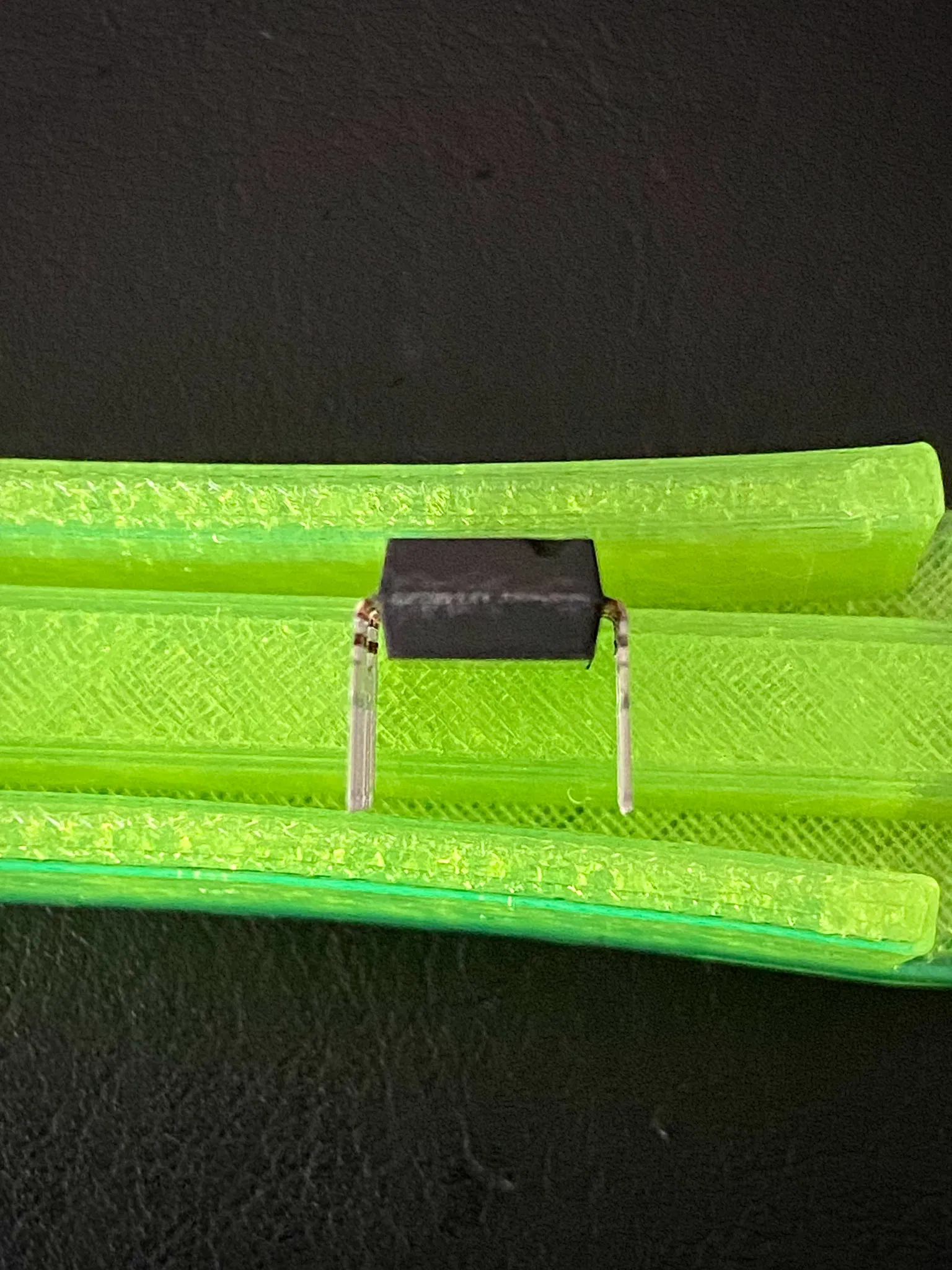 Mình cũng thêm góc nghiêng ở bên trong rãnh để bẻ chân IC qua vị trí thẳng đứng một chút, để bù lại độ đàn hồi của chân IC. Như vậy thì cuối cùng chân IC sẽ thẳng đứng gần như hoàn hảo.