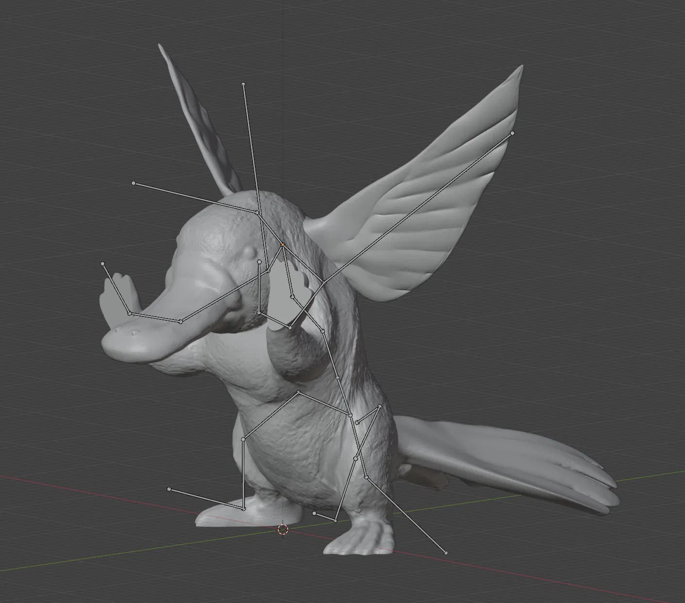 Giơ tay lên, biến dạng giúp không còn chân bẹt khi in, vẫn cần support, nhưng giờ có thể tạo dáng và hoạt ảnh hóa. Tuyệt vời ông mặt trời! Mô hình Chim Ruồi Mỏ Vịt (Đã Rig) này chắc chắn sẽ làm hài lòng bạn.