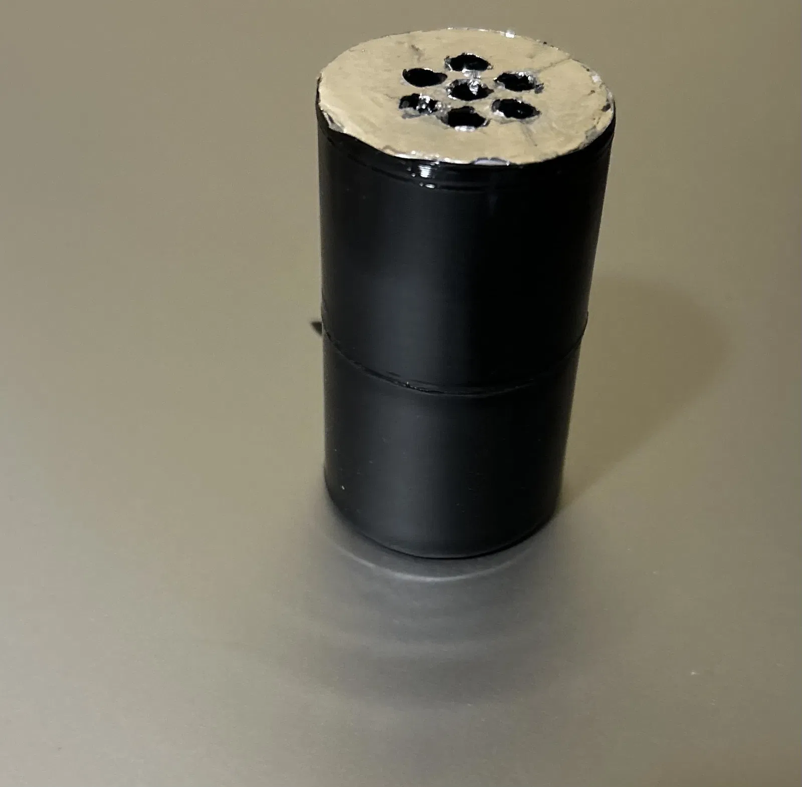 Cái này nằm giữa đế motor và cái dù. Gắn dây sốc vô vách ngăn bằng cái móc. Dùng cái ống lót đi kèm để gia cố mối nối. Phết một lớp giấy bạc lên mặt úp vô cái motor. Châm lủng lỗ trên giấy bạc. Tôi rất khuyến khích xử lý bộ phận in 3D bằng hơi acetone để tăng độ cứng cáp và trông đẹp hơn.