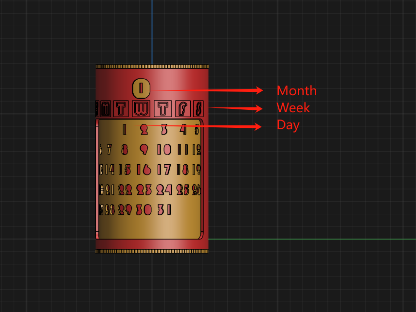 Mô hình có phiên bản Tết (chữ Phúc) và phiên bản tiếng Anh, mọi người chọn một trong hai để in nha. Lắp ráp theo hình vẽ, căn chỉnh chữ "Phúc" trên nắp tháng và "Long Niên Đại Cát" trên đế ngày vào thứ Tư của vỏ ngoài là có thể lồng vào và xoay được.