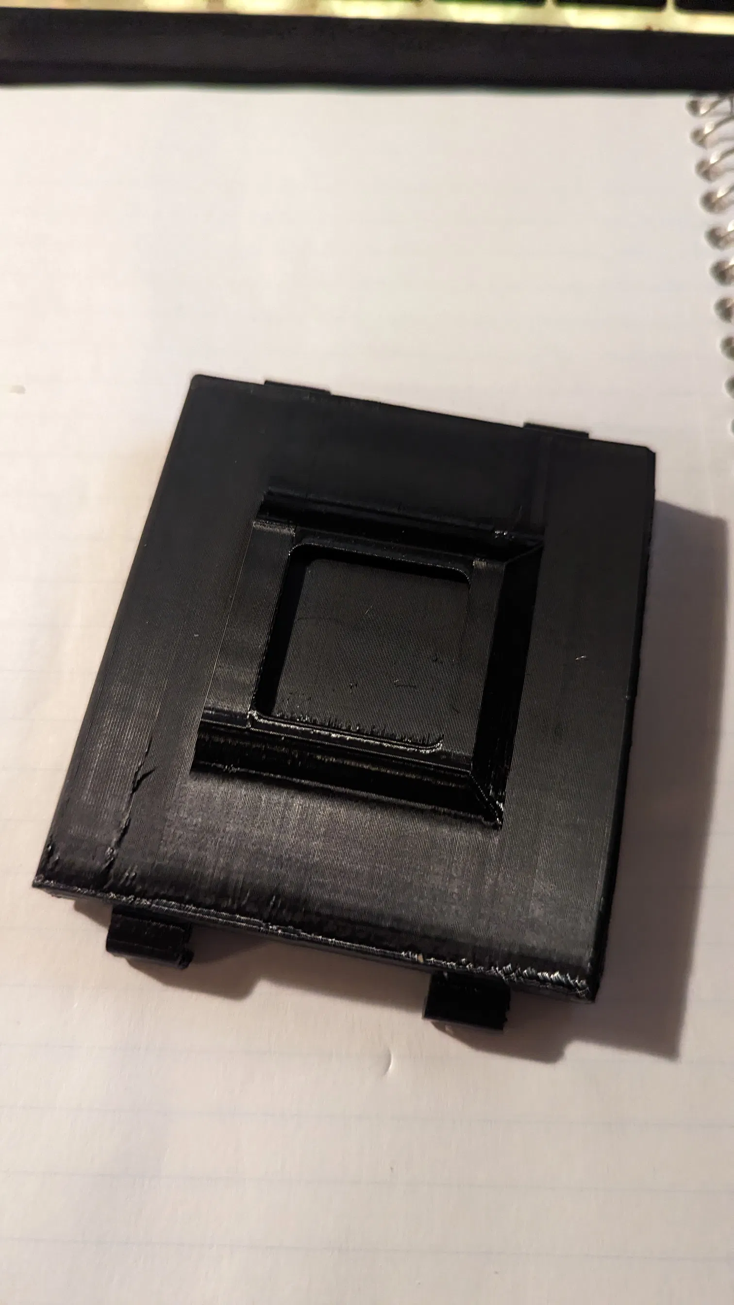 Tui thích ý tưởng của cái kẹp giữ dark slide của Voelund nhưng mà hông thích phải dán bằng băng keo. Tui có tìm được một phiên bản khác trên thingiverse nhưng mà cái kẹp nó hông có bám chắc được với tui, nên tui sửa lại bằng cách làm cong cái mặt trong chỗ tiếp xúc với cái hộp phim lại, giờ thì nó ôm sát hơn nhiều mà hông bị bung ra.