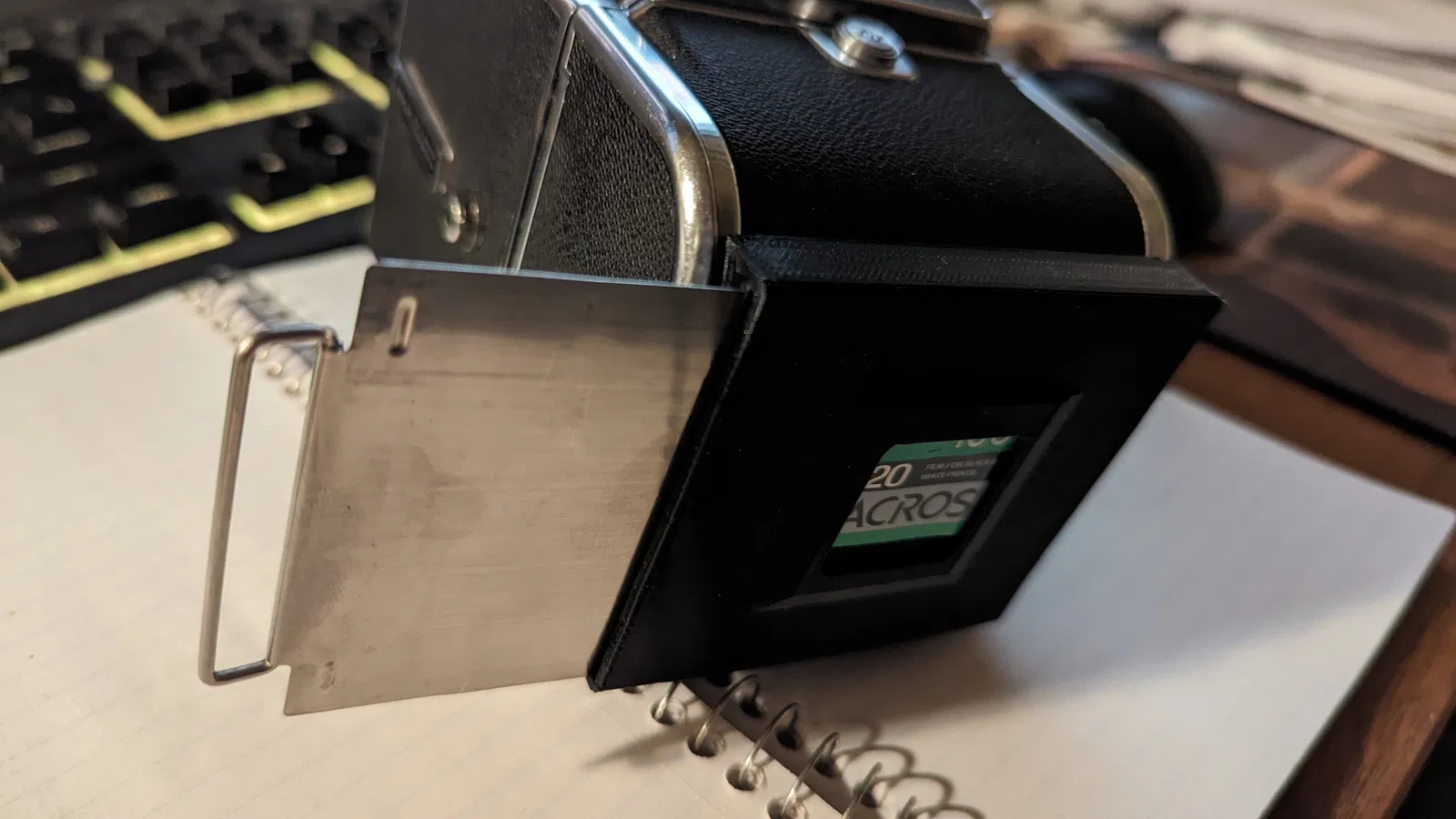 Cái kẹp này gắn vô mặt sau hộp phim, giúp giữ dark slide của bạn. Phiên bản cải tiến ôm sát, không bị bung ra như các mẫu cũ. In dọc để dễ sử dụng, có hỗ trợ support organic cho kết quả tốt nhất.