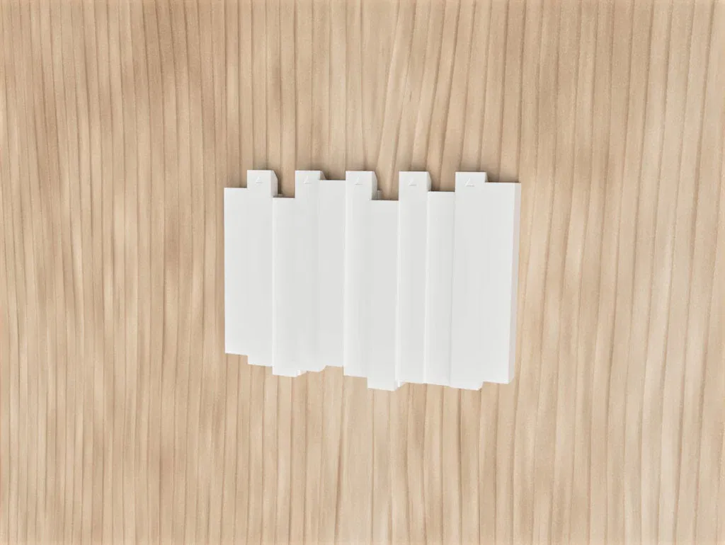 KeyMaskHolder_Peg.stl => Các cái chốt, trượt chúng từ dưới lên. Chúng nên vừa khít. Bạn cần 5 cái chốt