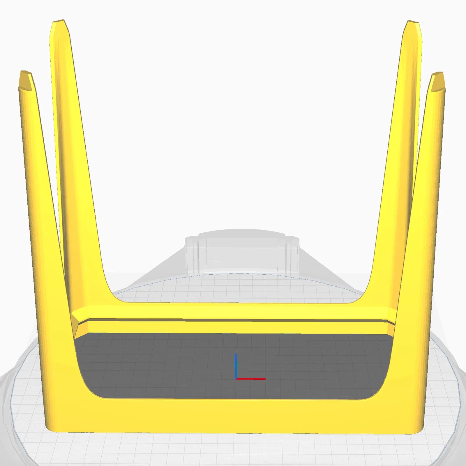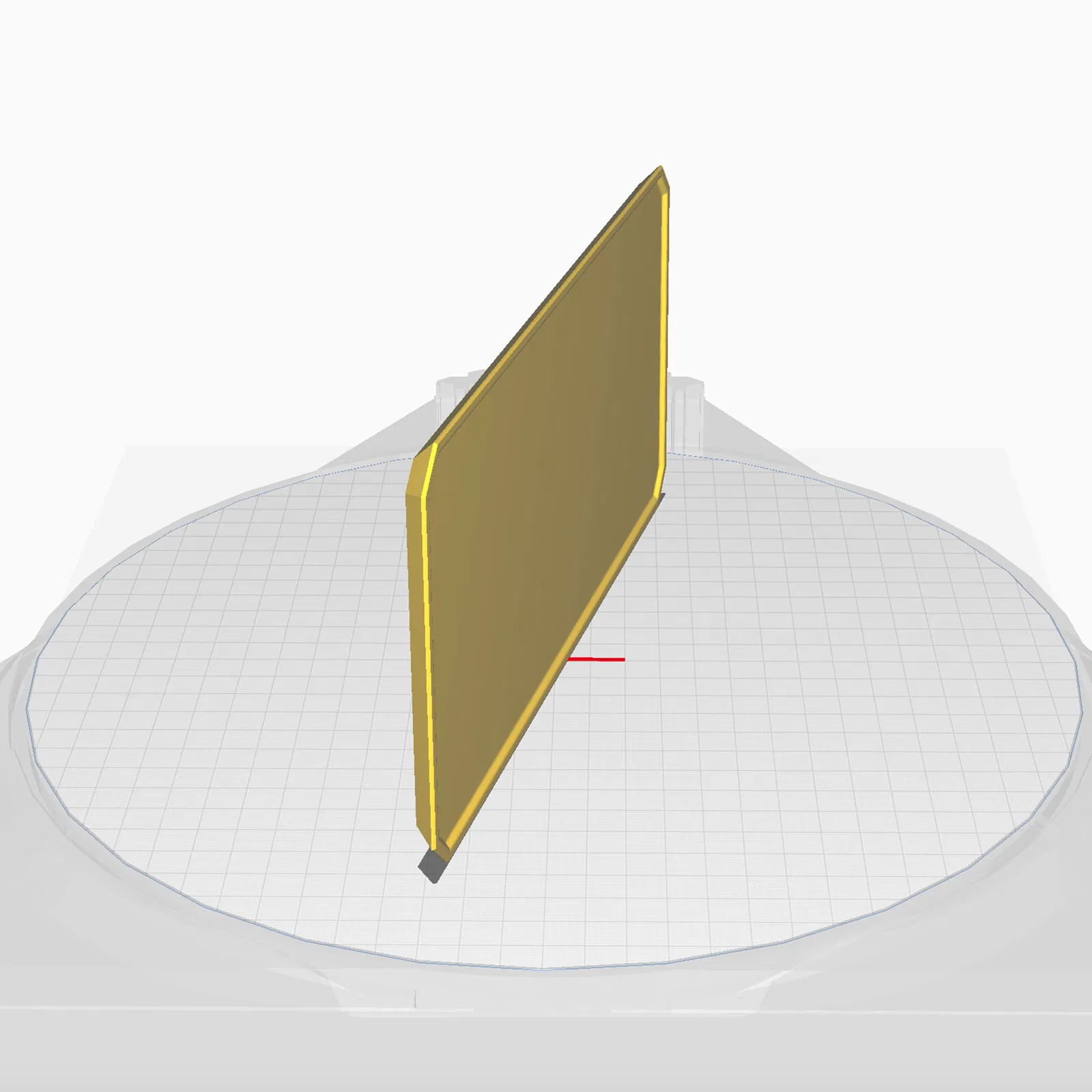 Phần chân đế và thân kệ được thiết kế để in ngược (úp xuống). Phần kệ phải được in nằm trên mặt phẳng/cạnh của nó như hình bên dưới. (3 mặt còn lại nghiêng 45 độ để tiết kiệm thời gian và vật liệu in)