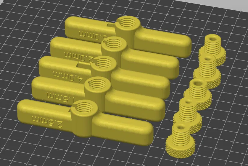 Tôi đã bao gồm các tệp tay cầm và lõi cho mỗi kích cỡ mét tiêu chuẩn từ 1.5-10mm và kích cỡ inch từ 1/16" - 3/8". Tôi cũng đã bao gồm một tệp 3mf có bộ mét cho các cờ lê đi kèm với hầu hết các máy in Creality: kích cỡ 1.5-4mm. Bạn có thể xem khay lưu trữ tôi thiết kế riêng cho các tay cầm này để gắn vào ray 20x20 tại đây: