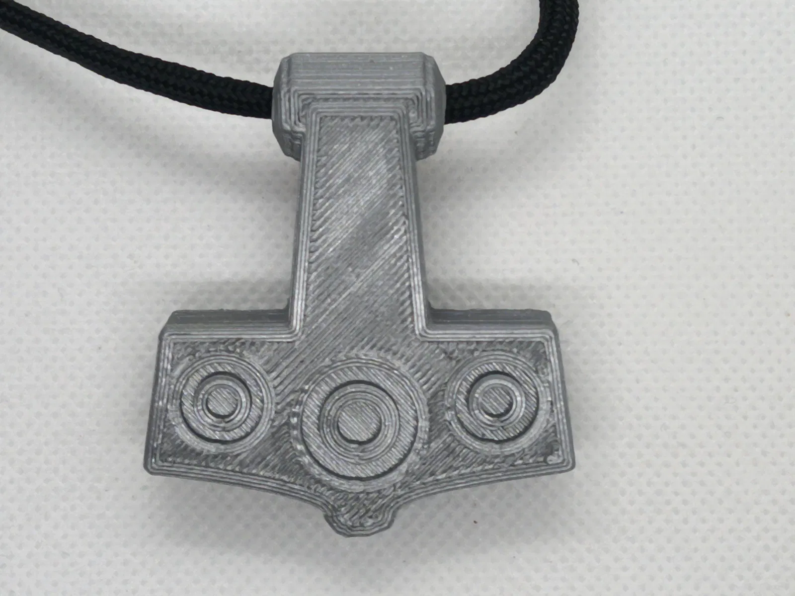 Đây là mô hình Mjölnir, Búa của Thor (https://en.wikipedia.org/wiki/Mjölnir), được điều chỉnh theo kích thước của một hiện vật được tìm thấy ở Bredsätra, Öland, Thụy Điển, có niên đại khoảng 1.000 năm tuổi. Tay nghề không được bằng, nhưng tạm ổn để bắt đầu. Có một lỗ để xỏ dây ở cán, và tệp SCAD có tham số, vì vậy bạn có thể dễ dàng thay đổi kích thước và hình dạng mà không làm thay đổi kích thước của lỗ xỏ dây.