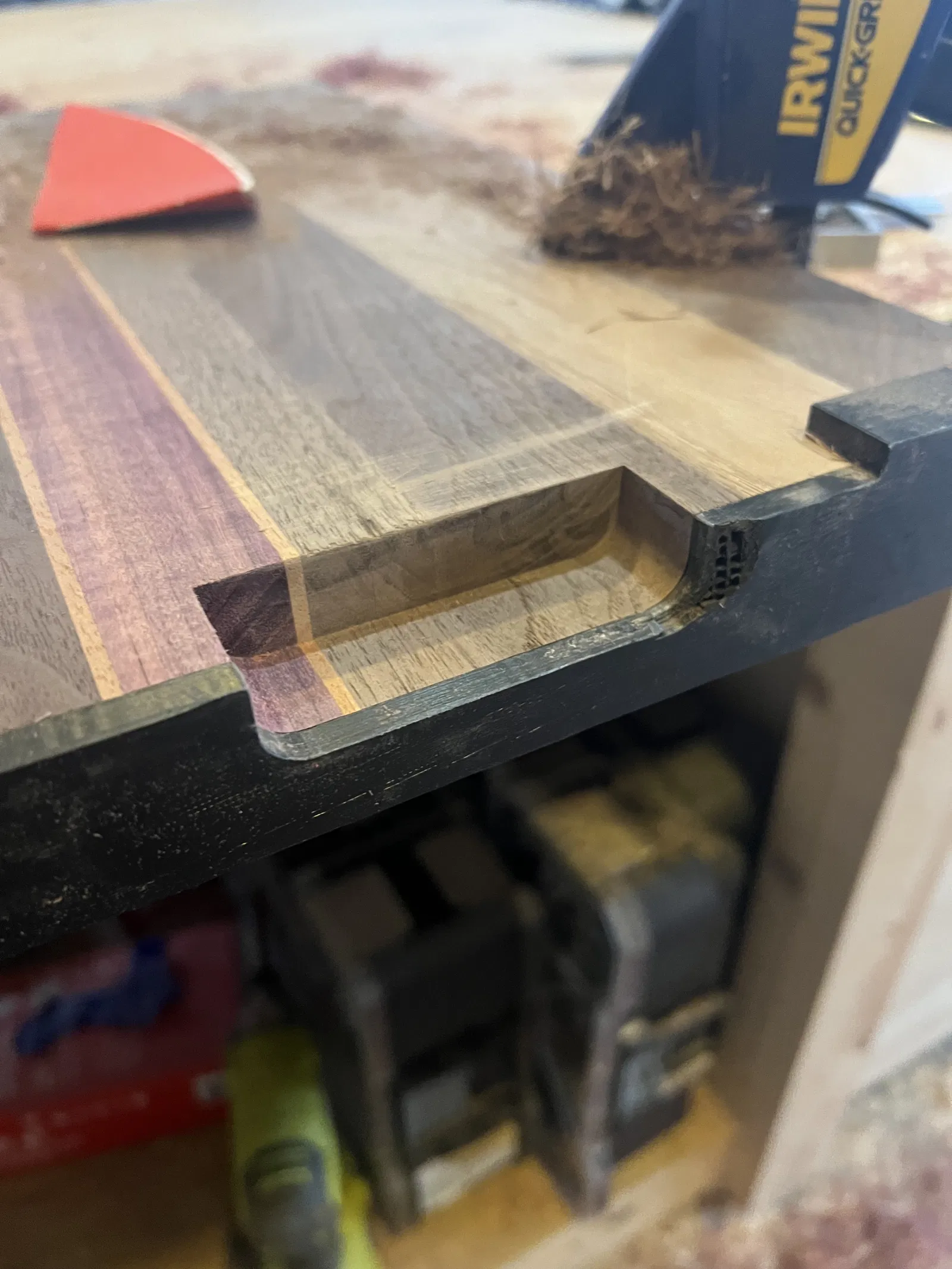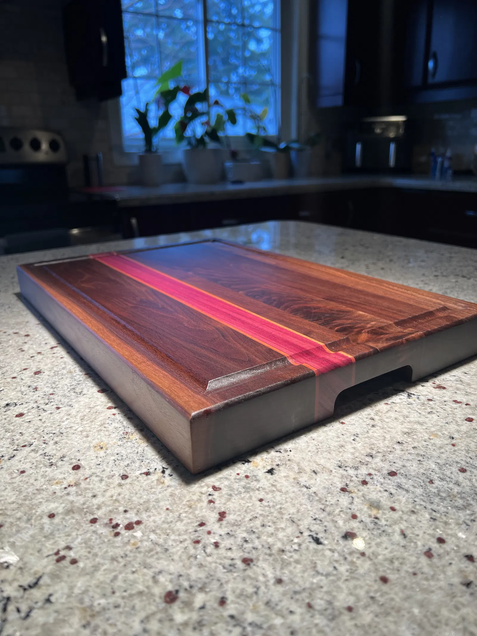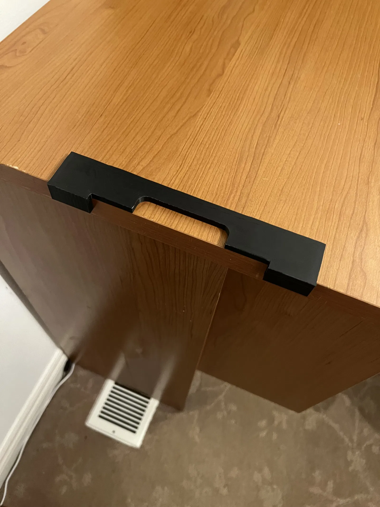 Đây là khuôn ruter xịn sò để khoét lỗ tay cầm trên thớt. Gắn khuôn bằng băng keo hai mặt hoặc kẹp rồi dùng mũi ruter khuôn để tạo tay cầm. Tay cầm rộng 3", cao 5/8".