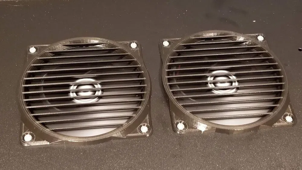 Các quạt cần phải là quạt 4 chân. Có 2 nắp, một cái có nam châm thiết kế cho nam châm hình trụ 8x3mm. Tôi không chắc nó sẽ giữ tốt như thế nào với nam châm (vì vậy hãy sử dụng nó theo rủi ro của riêng bạn). Nắp phía sau còn lại chỉ là một nắp phẳng. Tôi có lẽ sẽ sử dụng một số băng VHB để gắn cái của tôi.