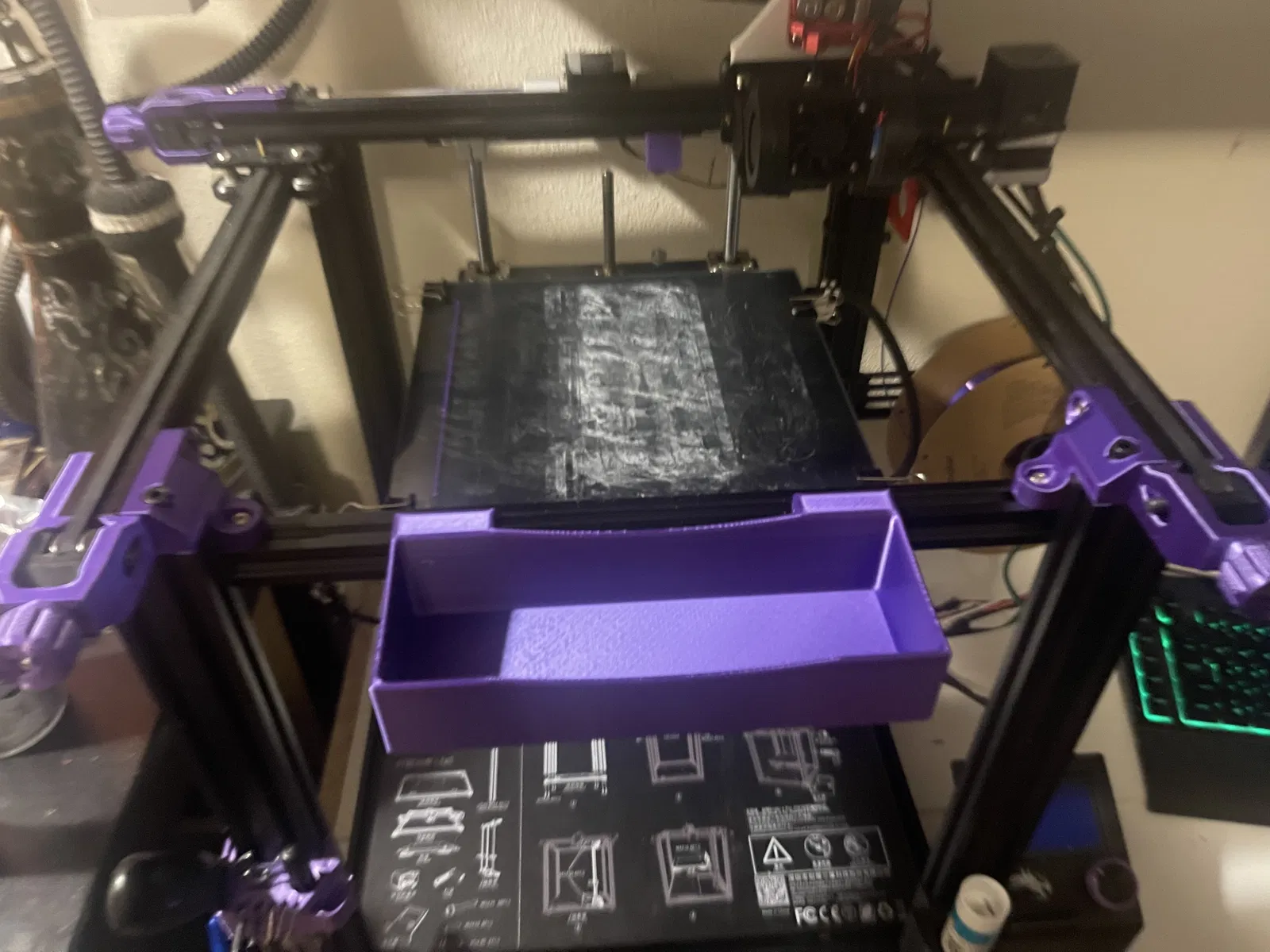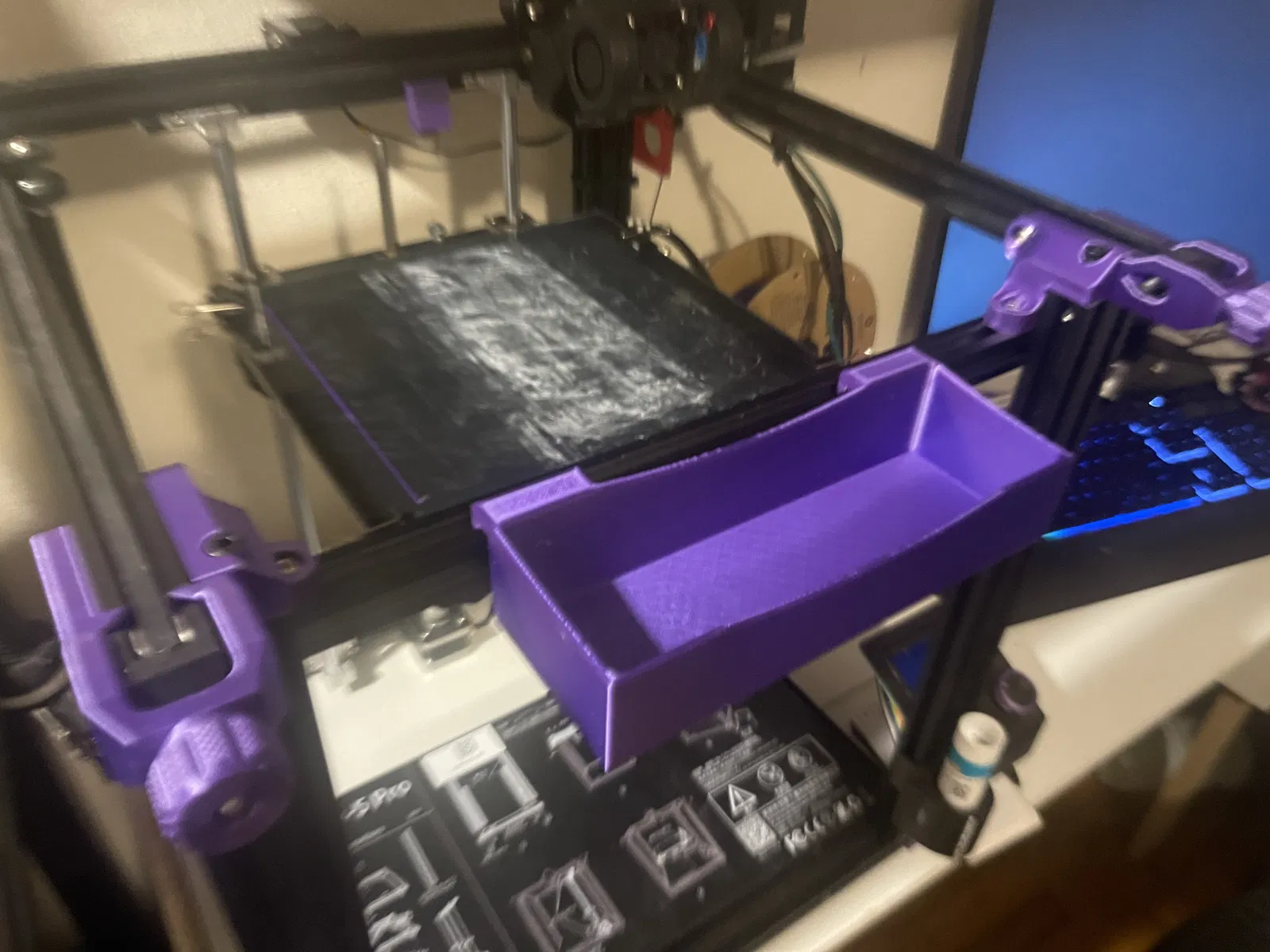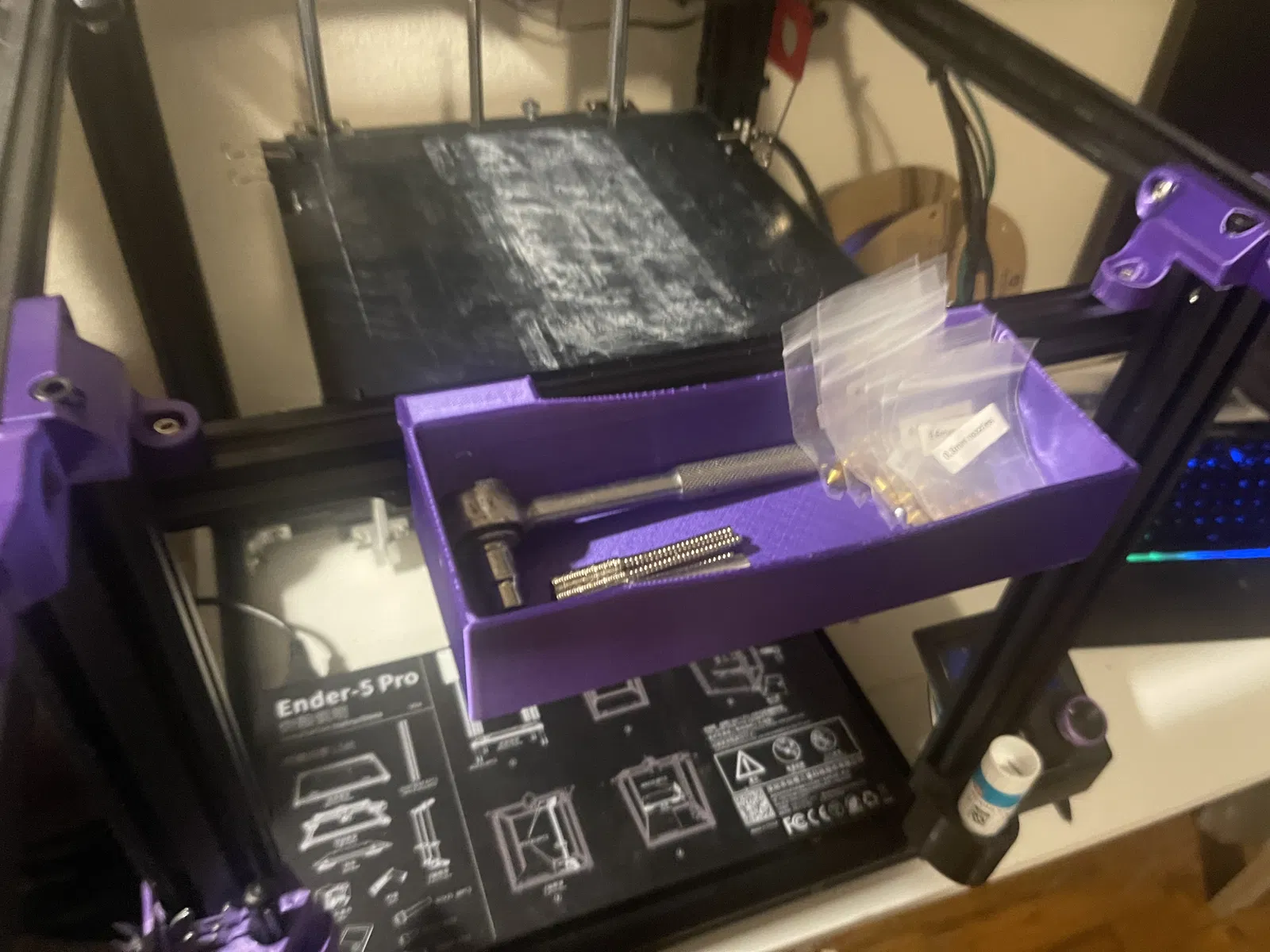 Khay đơn giản để đựng phụ tùng, dụng cụ, đầu phun, hoặc bất cứ thứ gì khác. trượt vào thanh nhôm 2020. Hoạt động tốt trên thanh trước được di chuyển trên Ender 5. Kích thước bên trong là 194mm x 64mm x 36mm