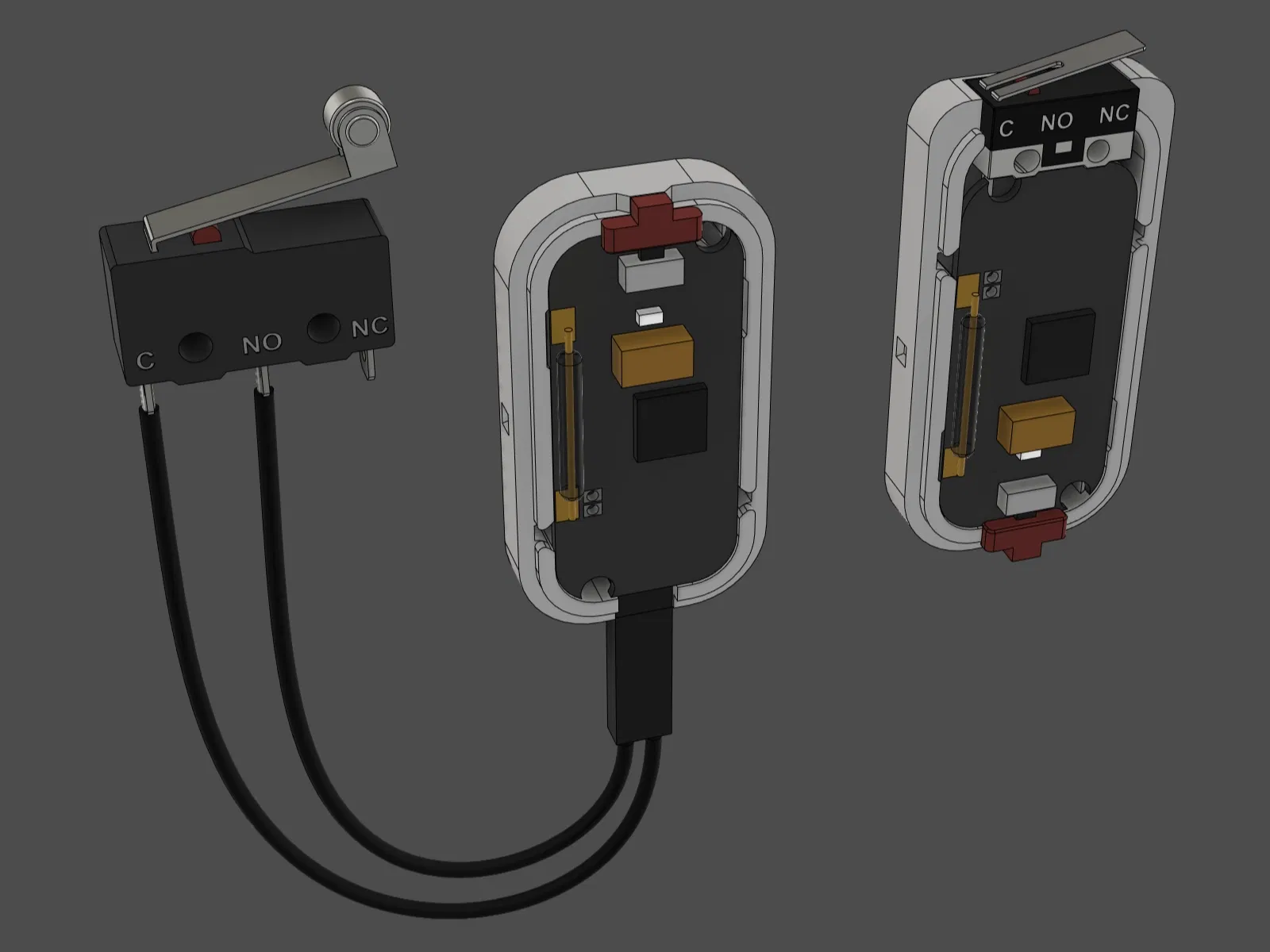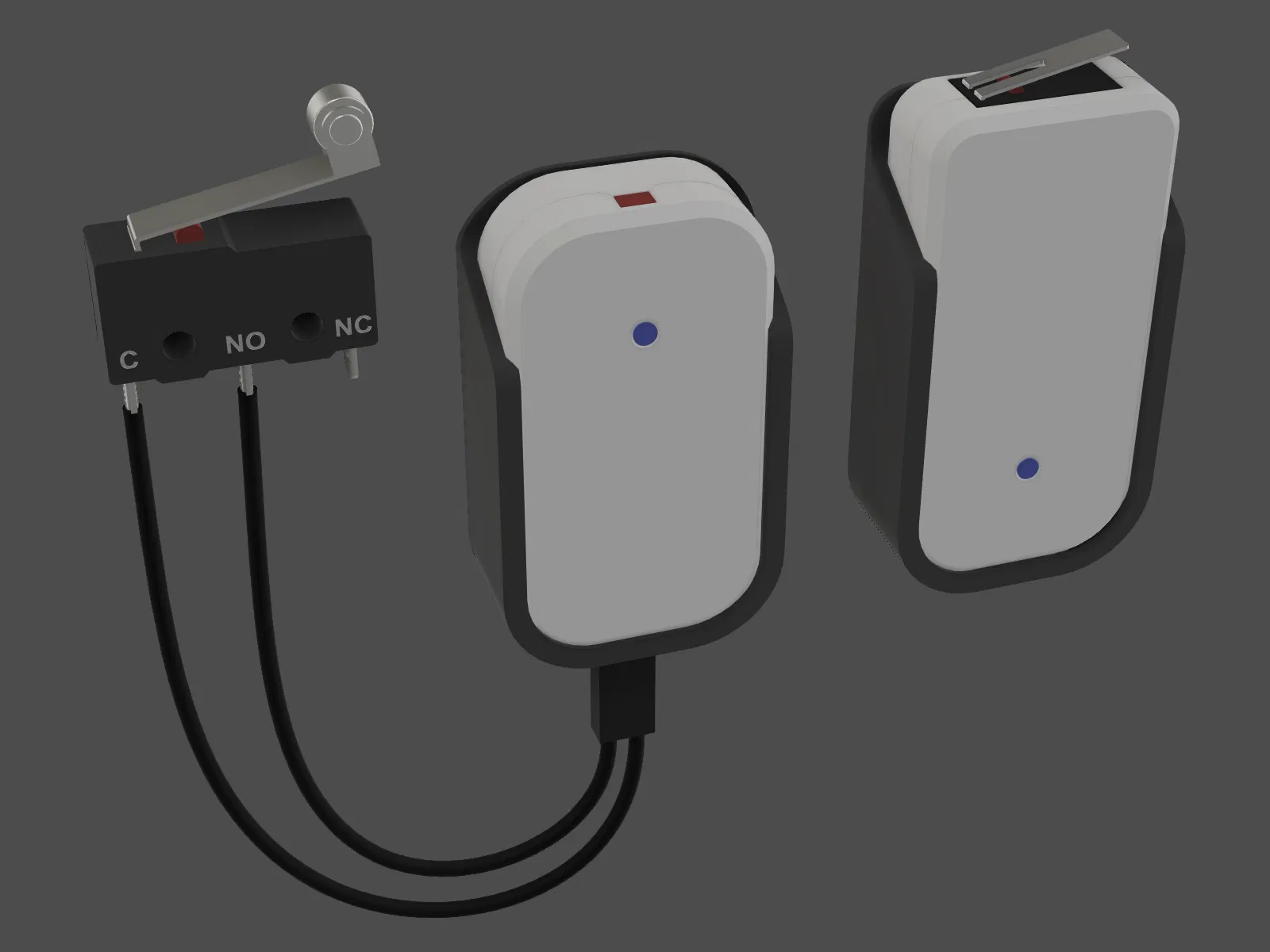 Cái còn lại có công tắc giới hạn (limitswitch) tích hợp sẵn. Có thể sử dụng tương tự như nam châm, nhưng với hành động nhanh hơn và chính xác hơn. Tôi dùng cái này trên tủ lạnh của mình để báo nếu cửa mở quá lâu. Khoảng cách kích hoạt của nam châm quá lỏng lẻo để có thể đáng tin cậy cho các khe hở cửa nhỏ.