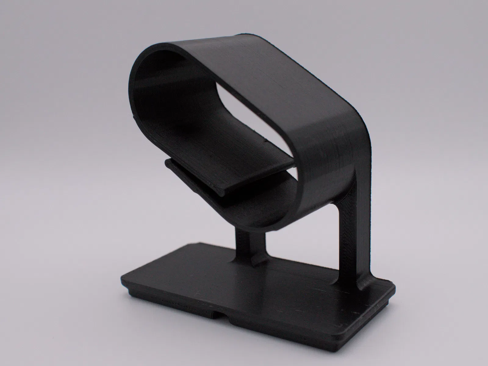 Một đế giữ đồng hồ được thiết kế đủ linh hoạt để chứa các loại vòng kim loại với kích thước cổ tay nam phổ biến. Chiều rộng vòng tối đa khoảng 22mm (tiêu chuẩn là 20mm). Phần đế tương thích với hệ thống Gridfinity do Zack Freedman thiết kế (kích thước 2x1).