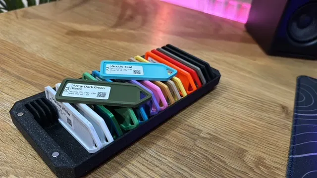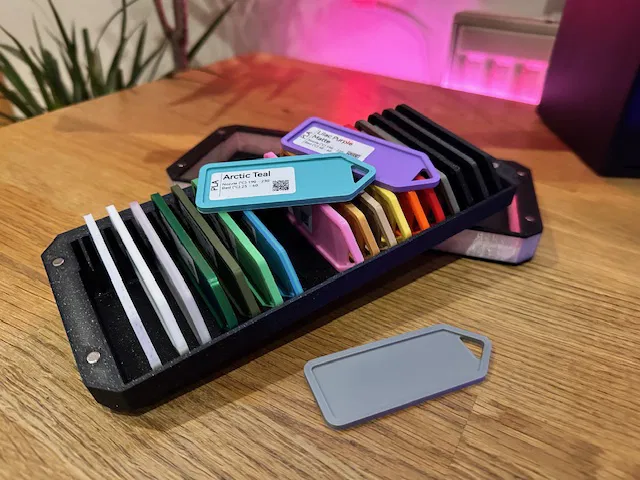 Tôi quyết định tôi có nhiều màu sắc và không muốn chúng vào và ra khỏi không gian lưu trữ chỉ để kiểm tra màu sắc. Vì vậy, tôi đã in tuyến tính swatch .stl và mở Fusion 360 và thiết kế một khay có thể lưu trữ đến 40 lần swatches, tôi không cần một cơ chế có bản lề và chỉ muốn khay. . Nam châm có thể được đẩy vào sau khi in.