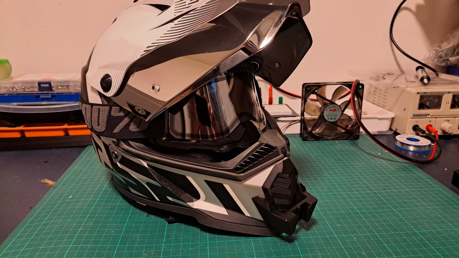 Tôi không thể tìm thấy một chiếc cằm mà tôi thích cho mũ bảo hiểm của mình nên tôi đã làm một cái. Các góc của mũ bảo hiểm rất không đều với các mặt phẳng hơi xoắn, vì vậy không dễ để có được sự phù hợp. Nó không hoàn hảo nhưng rất gần. Sẽ mất một số chà nhám tối thiểu để có được toàn bộ các bề mặt hoàn toàn phù hợp, nhưng nó đủ gần để tôi không bận tâm. Tôi cũng sử dụng một dây buộc để bảo mật vì dù sao nó cũng bắt buộc trên hầu hết các bản nhạc xung quanh khu vực của tôi.