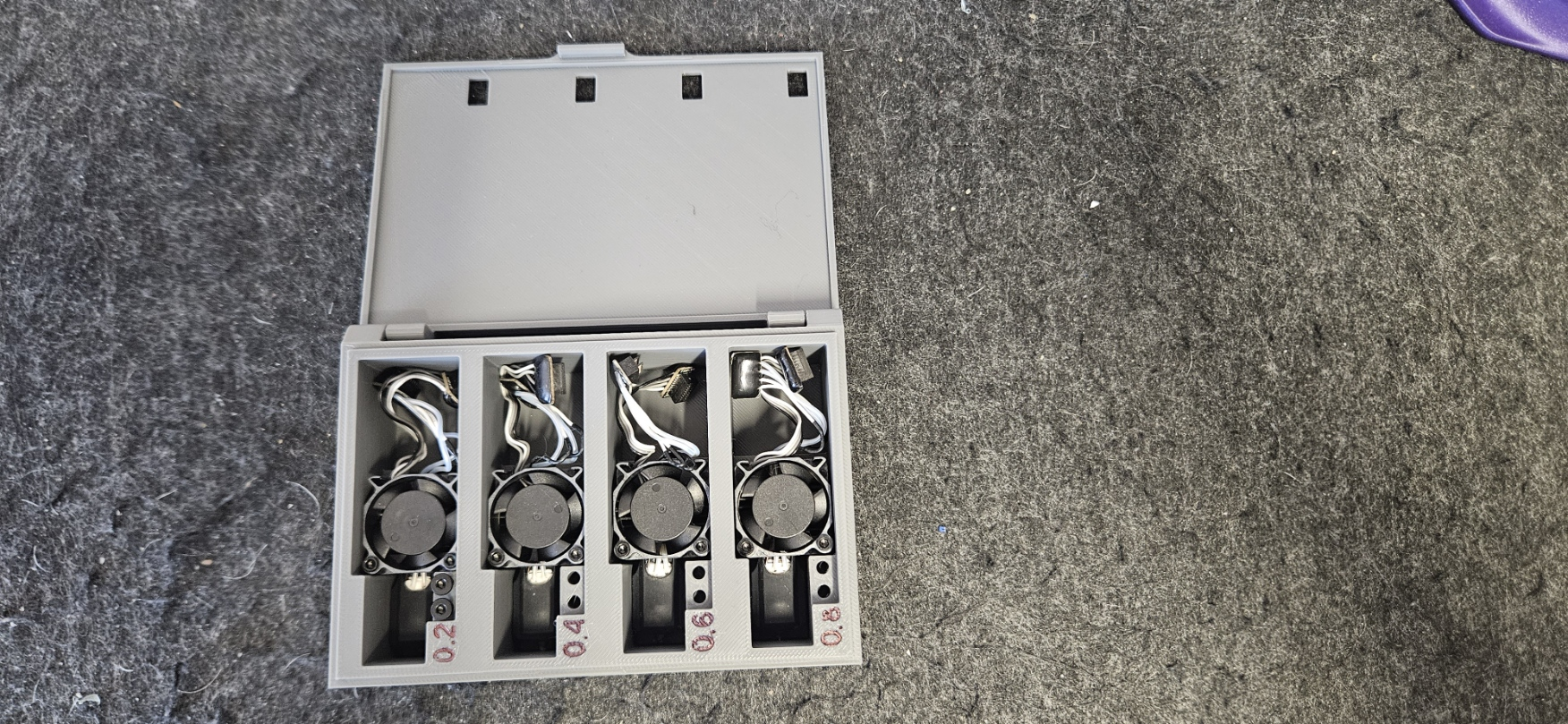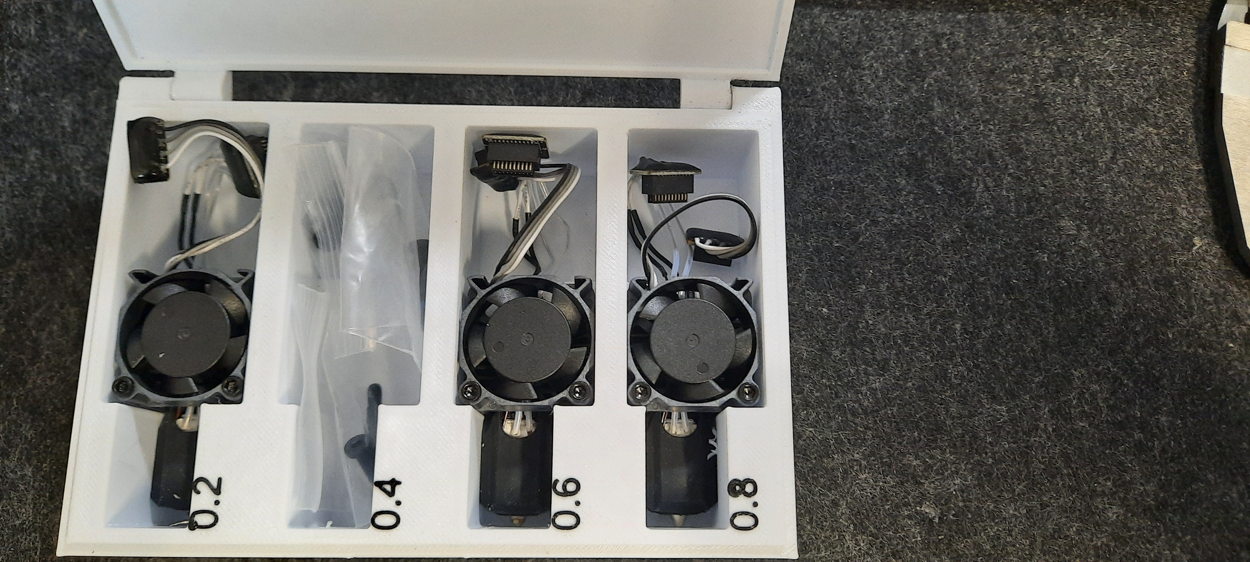 Một cái hộp để chứa tối đa bốn đầu phun Bambu Lab Hotend.