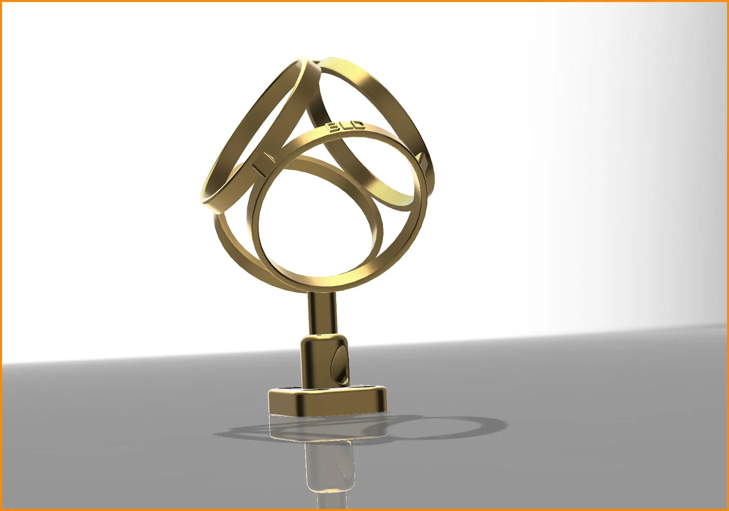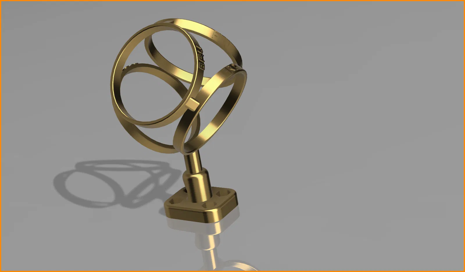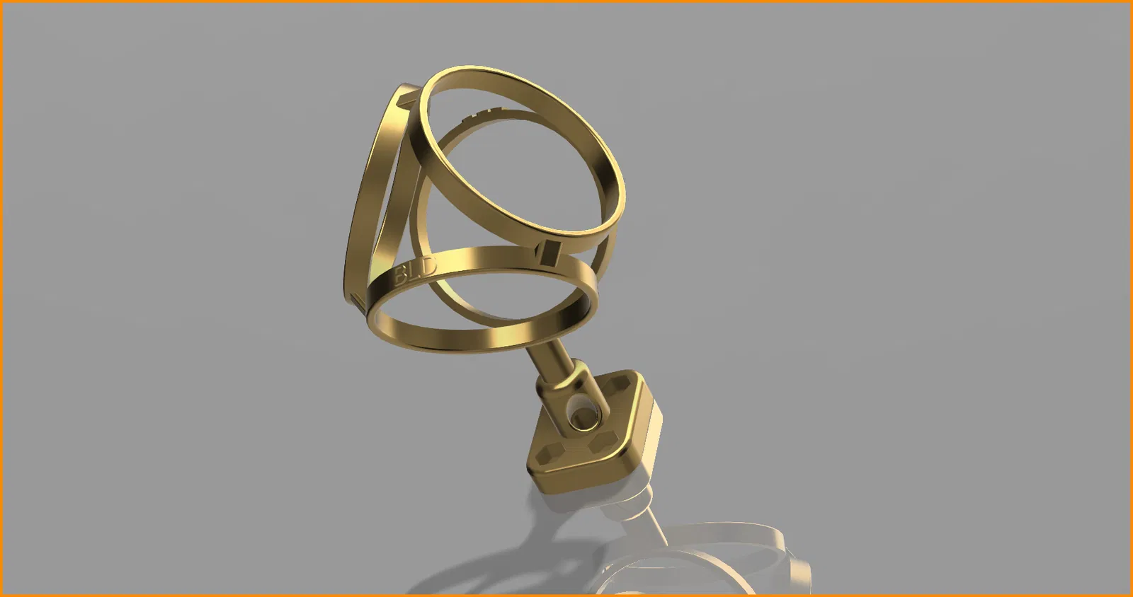 Giá đỡ bằng đồng cho Micro Capsule Tụ điện 34mm để làm Mic hình Tứ diện Ambisonics Bậc 1. Giá đỡ này yêu cầu in bằng CNC. Các capsule được lắp bằng cách ấn, đảm bảo tiếp xúc điện. Có thể tùy chọn kết nối đất hoặc cấp điện áp phân cực +.