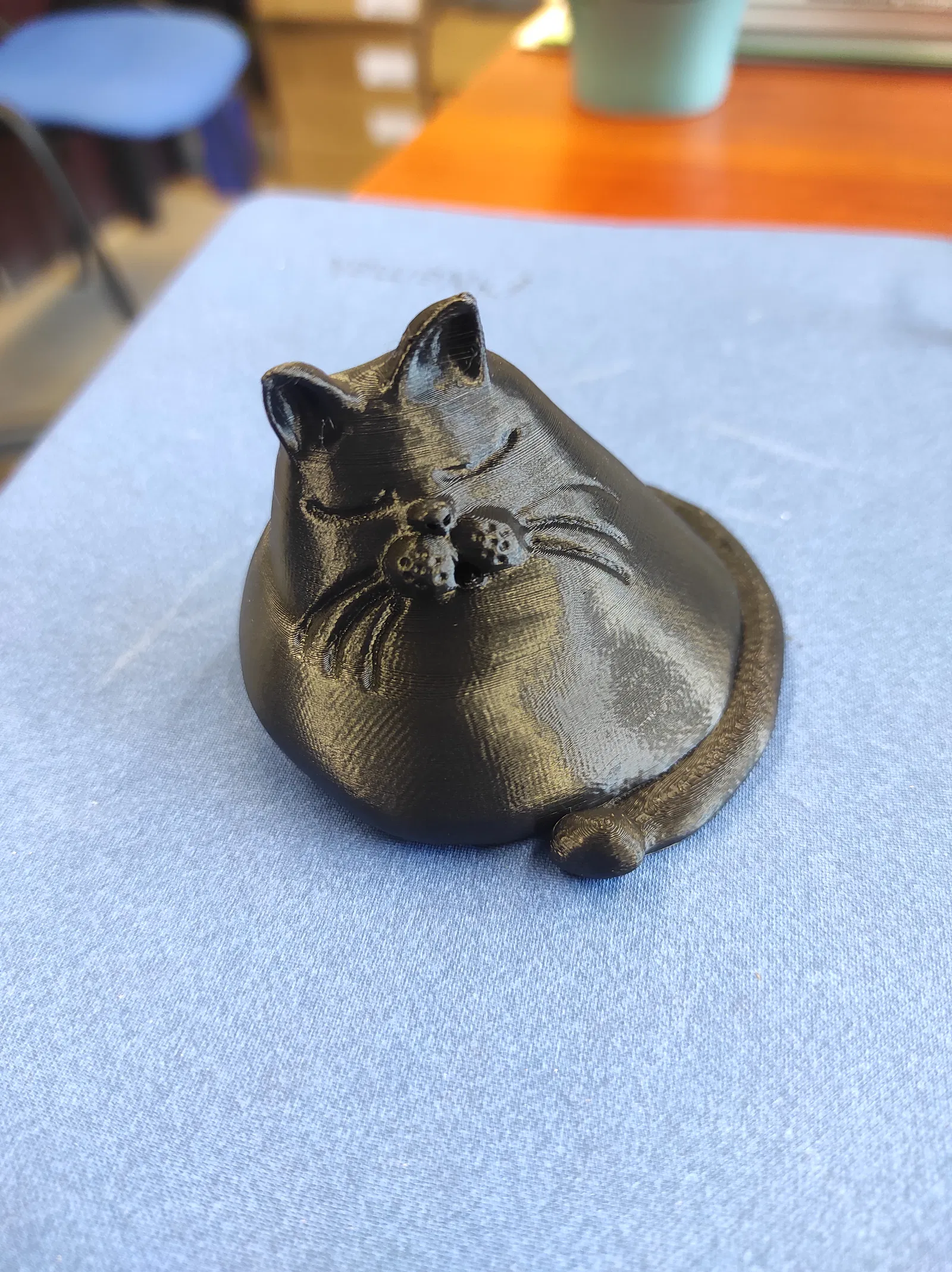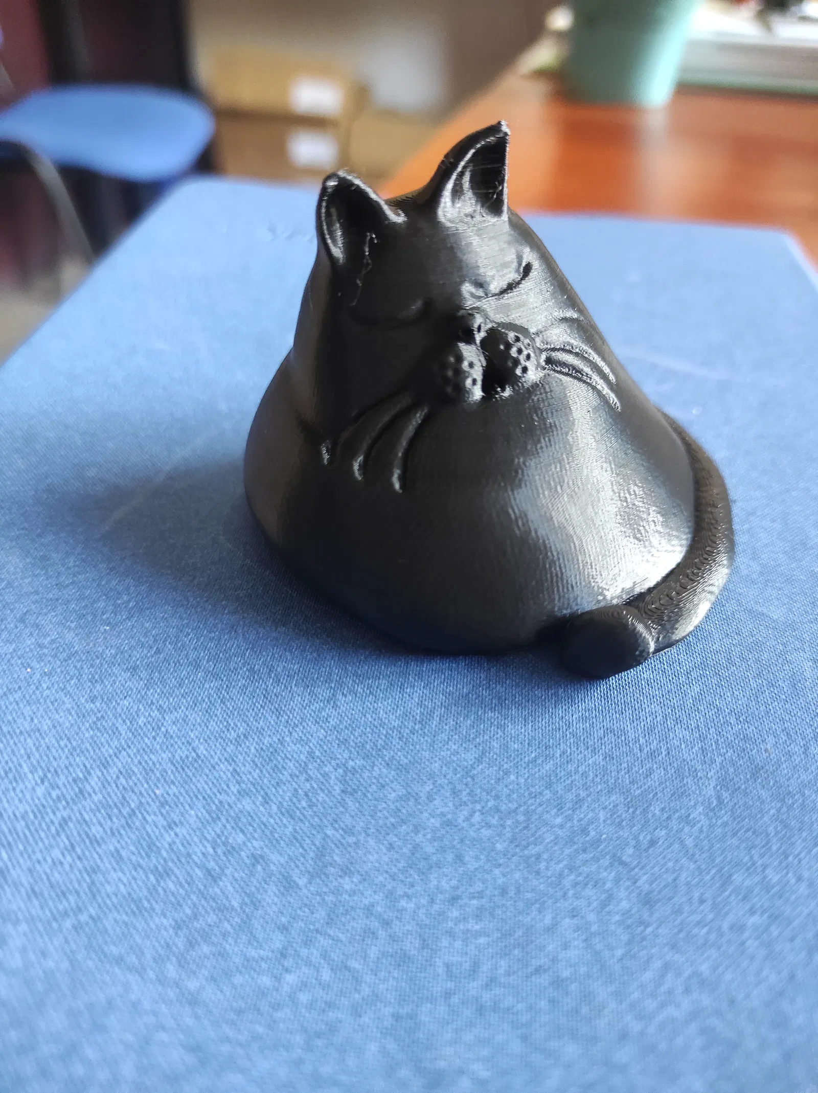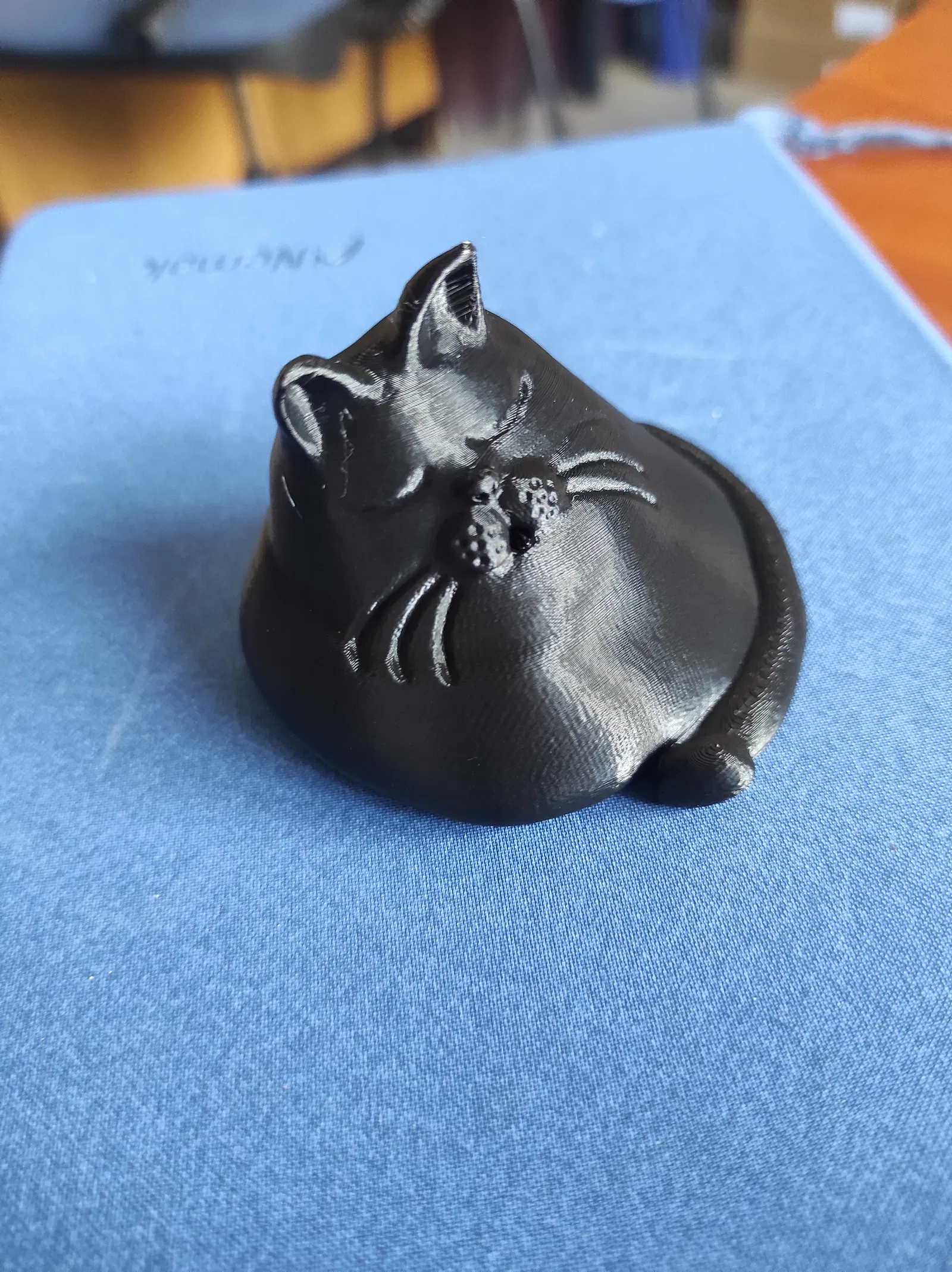 Một bé mèo mập ú, ốm hơn bé trong video một tẹo, đang ngủ siêu cưng. Sản phẩm đầu tay làm bằng Blender, in không cần support. Cho mình xem thành quả của mấy bồ ở phần bình luận nha!