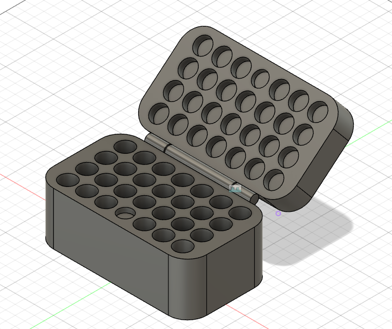 Hộp đựng pin. Mô hình này cần nhét 2 viên nam châm tròn đường kính 1.5cm vào để sử dụng. Thích hợp cho các dự án liên quan đến nguồn điện và lưu trữ pin.