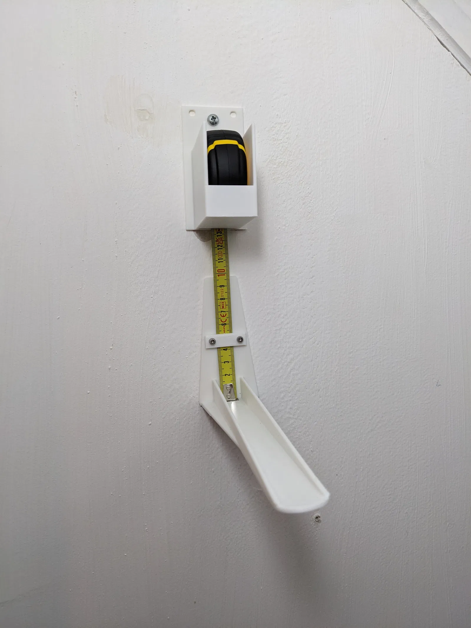 Cái này được tạo ra để phù hợp với cây thước dây STANLEY 3m x 13mm. Có thể nó sẽ vừa với mấy cây thước nhỏ khác, nhưng bạn nên chỉnh sửa lại nếu muốn nha. Tìm "toisemurale" trên Onshape để xem bản gốc và chỉnh sửa biến số.