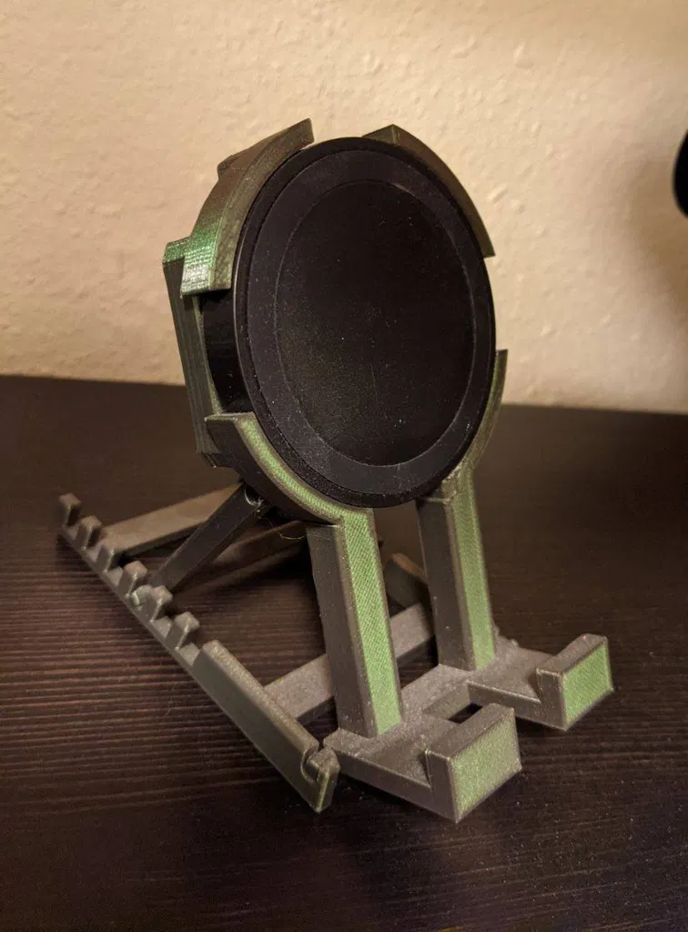 Tôi có cùng một bộ sạc Qi mà Njudson có, và tôi thích thiết kế của họ. Tôi chỉ sửa đổi phần chính, nó vẫn sử dụng đế đứng và cánh tay đứng từ thứ ban đầu. Tôi đã thêm một đôi môi để giữ điện thoại trên giá đỡ và một khe cắm để cắm điện thoại khi cần thiết.