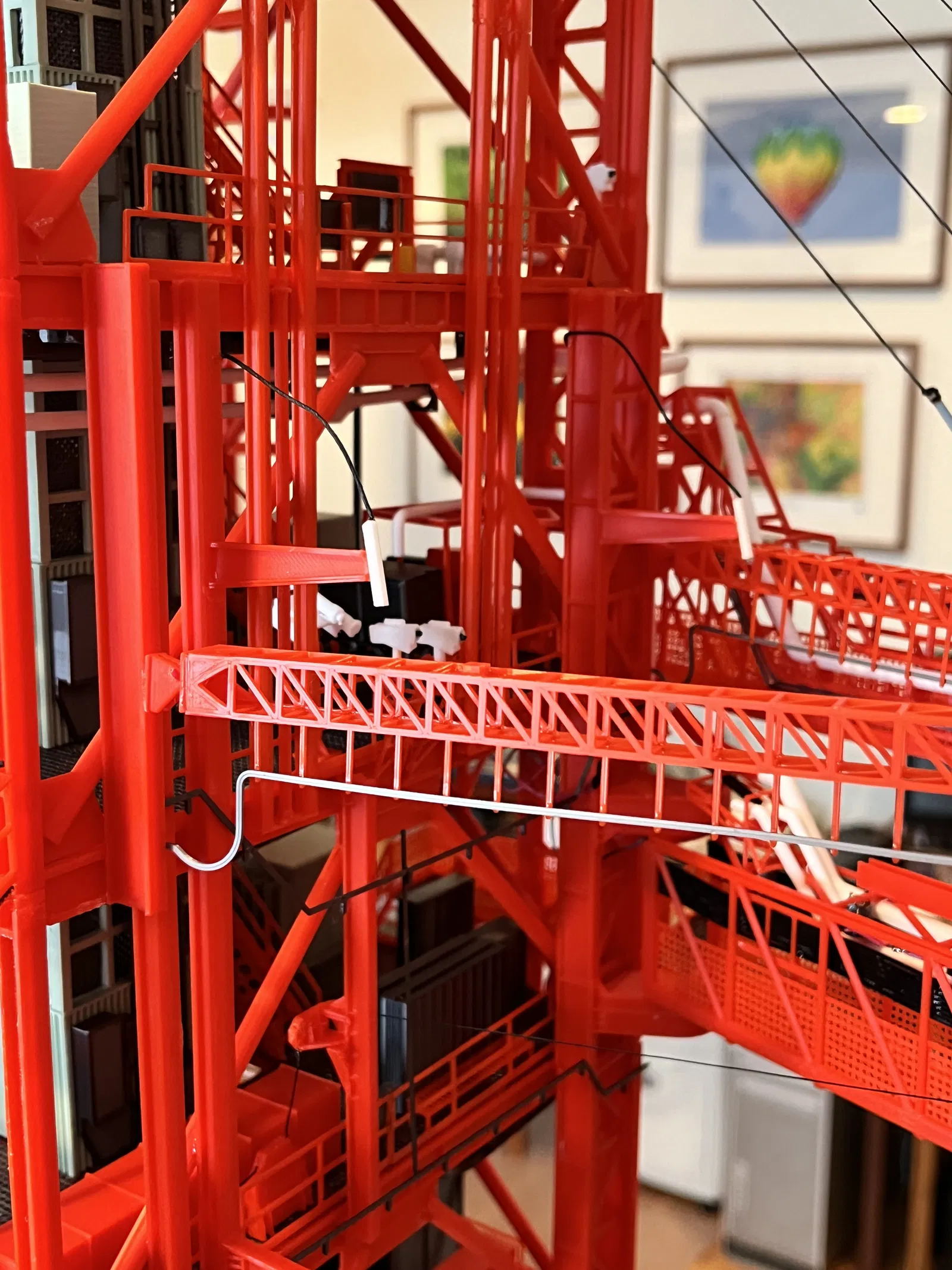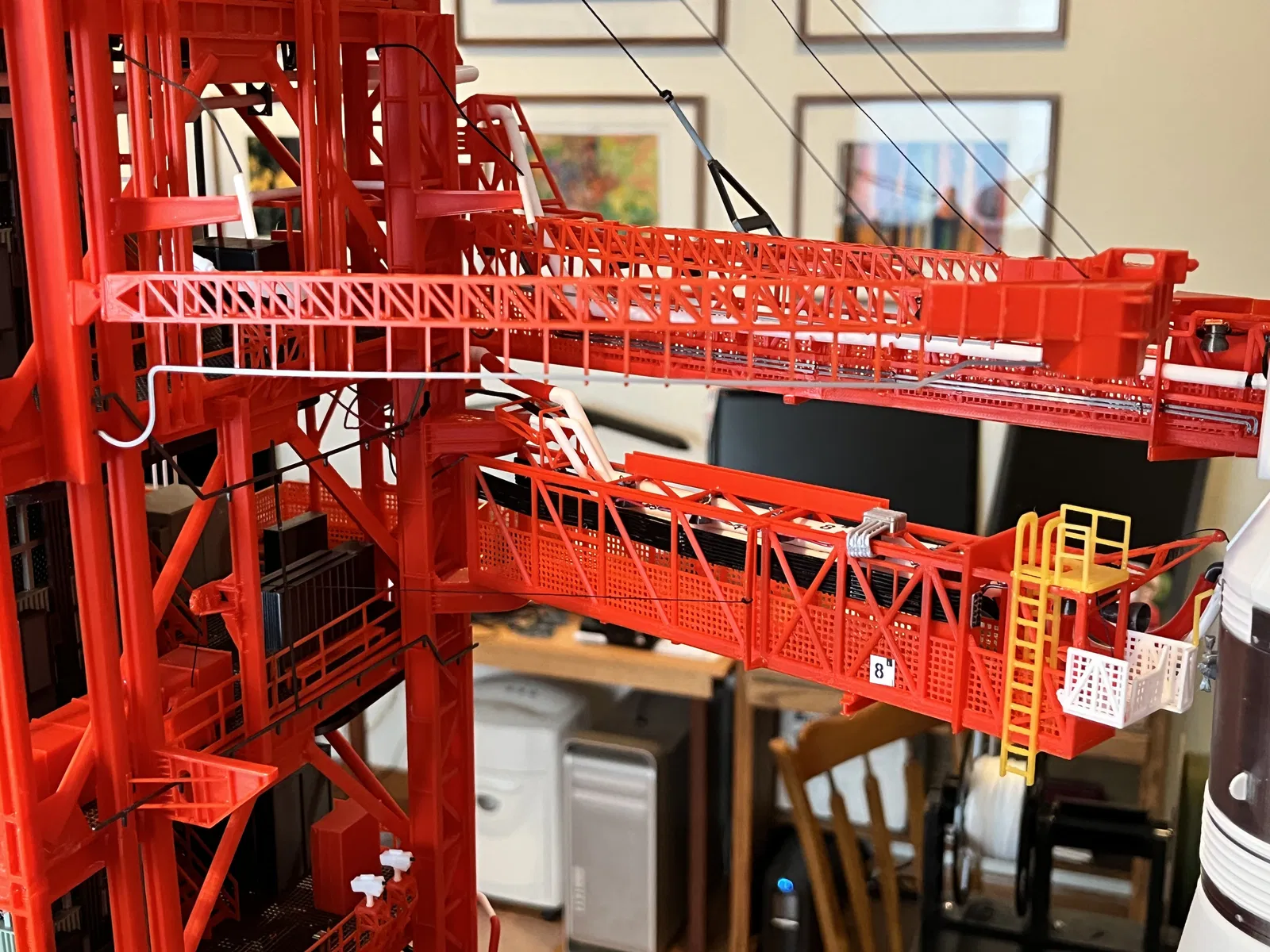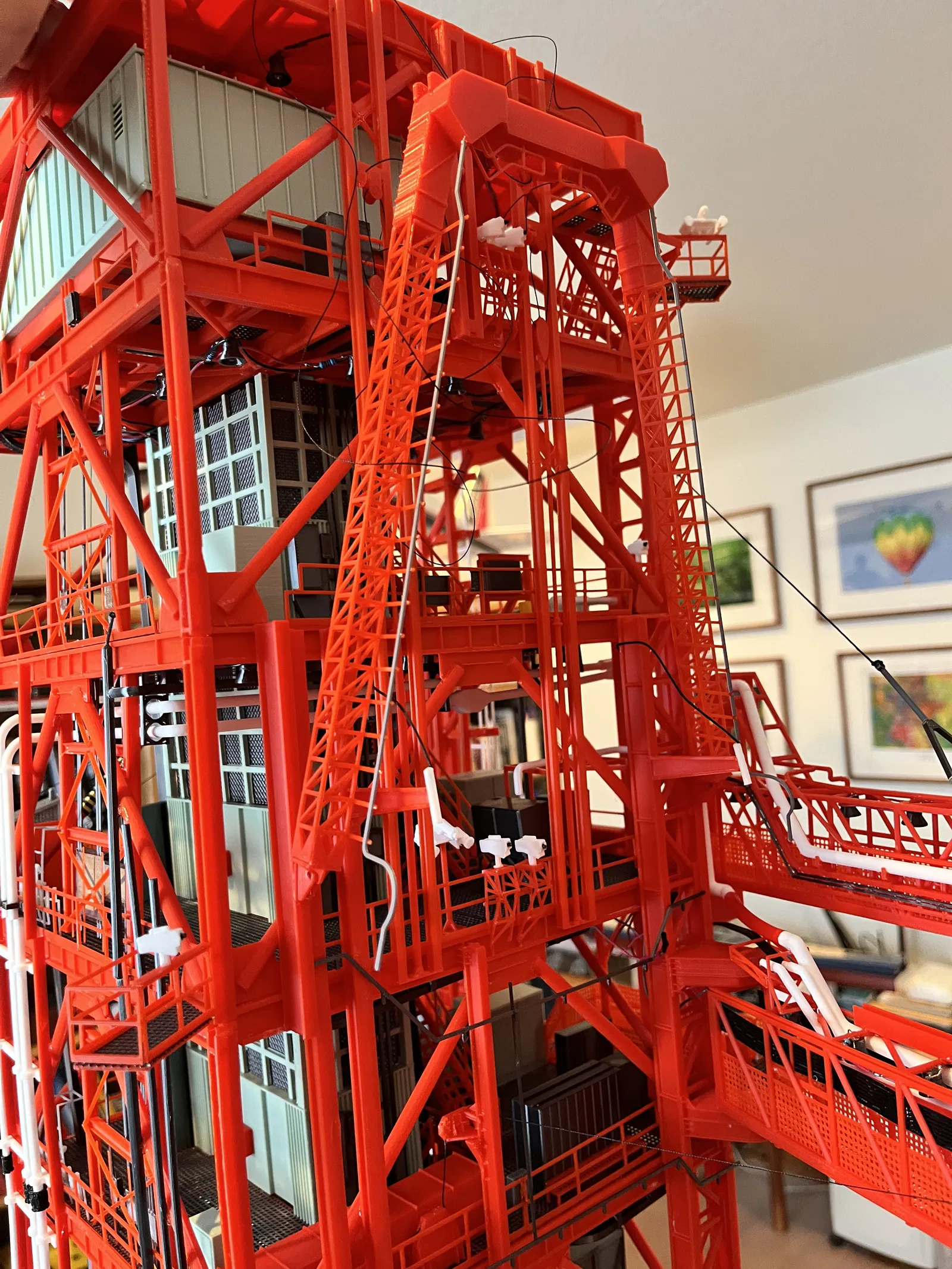 Cái này gồm có cánh tay DRRS để giữ cho tên lửa Saturn V ổn định. Đây là một phần của mô hình Tháp Rốn Apollo lớn hơn.