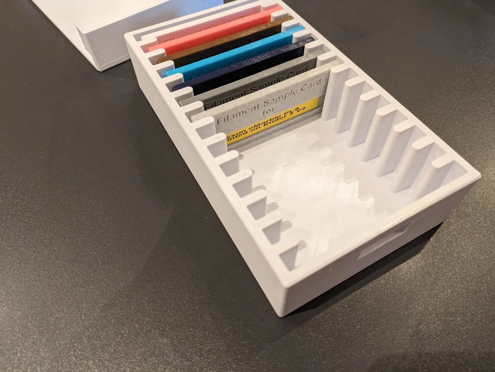 Hộp đựng thẻ mẫu kèm nắp, giúp bạn dễ dàng tìm đúng màu filament cho lần in tiếp theo. Hoàn hảo để quản lý bộ sưu tập màu sắc PLA của bạn.